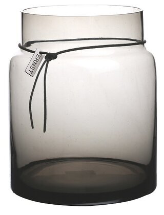 Bilden visar en glasvas från varumärket Ernst, tillgänglig hos Köpstaden.se, en plats där du hittar ett brett utbud för alla dina dagliga behov. Denna specifika vas har en rund form och är tillverkad av rökgrått glas, vilket ger den ett distinkt, jordnära utseende. Glaset är till synes jämnt och slätt, vilket reflekterar ljuset på ett subtilt sätt.