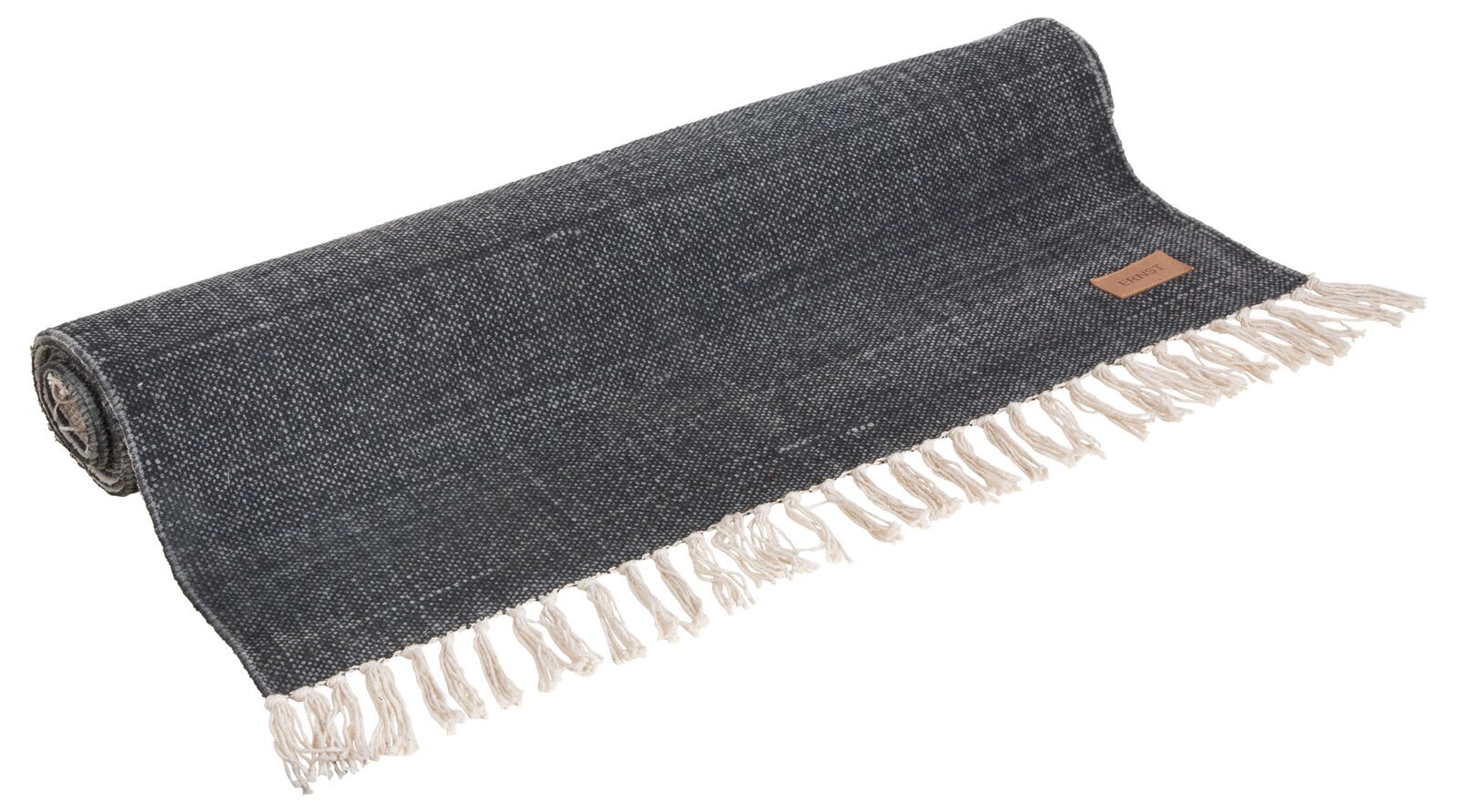 Mattan är grå och har en diskret mönstring som på nära håll avslöjar en smått spräcklig yta. Färgtonen kan beskrivas som mellangrå, vilket ger ett neutralt intryck som lätt kan matchas med olika typer av inredning. Materialet ger ett robust men samtidigt mjukt intryck, vilket tyder på en balanserad kombination av komfort och hållbarhet.