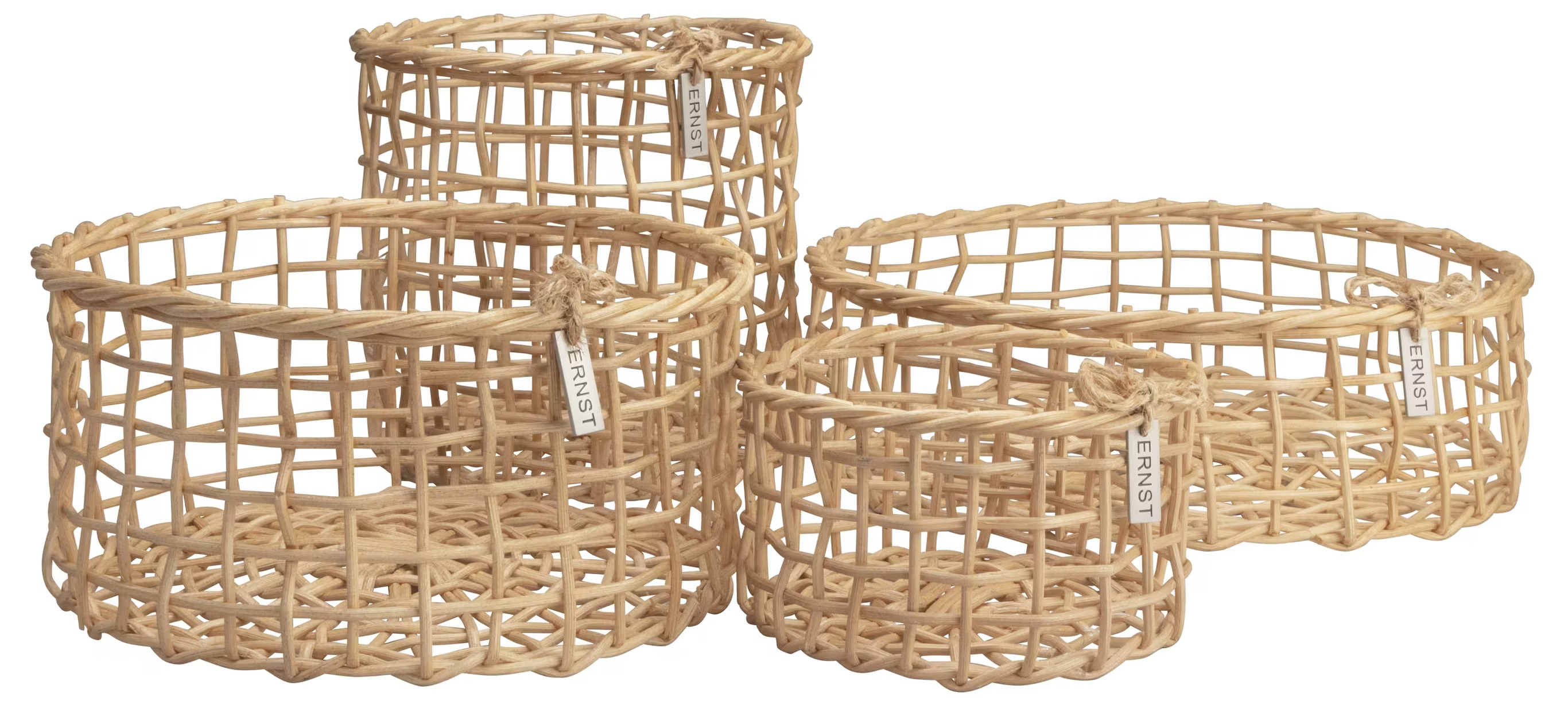 Set om 4 stycken korgar i naturfärgad bambu. Fina att använda i köket till oljor, lök mm. Läs mer