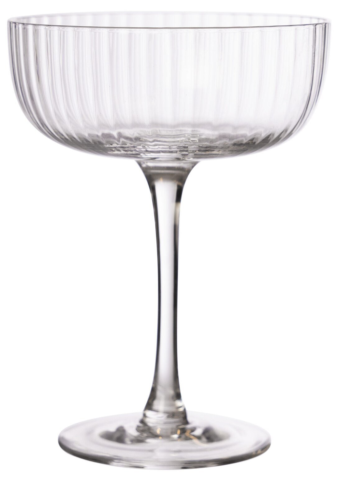 Dricksglas på fot i 2-pack med räfflat glas, passar fint både till bubbel, drink eller en riktigt god dessert & blir en vacker detalj till bordsdukningen. Från Ernst.