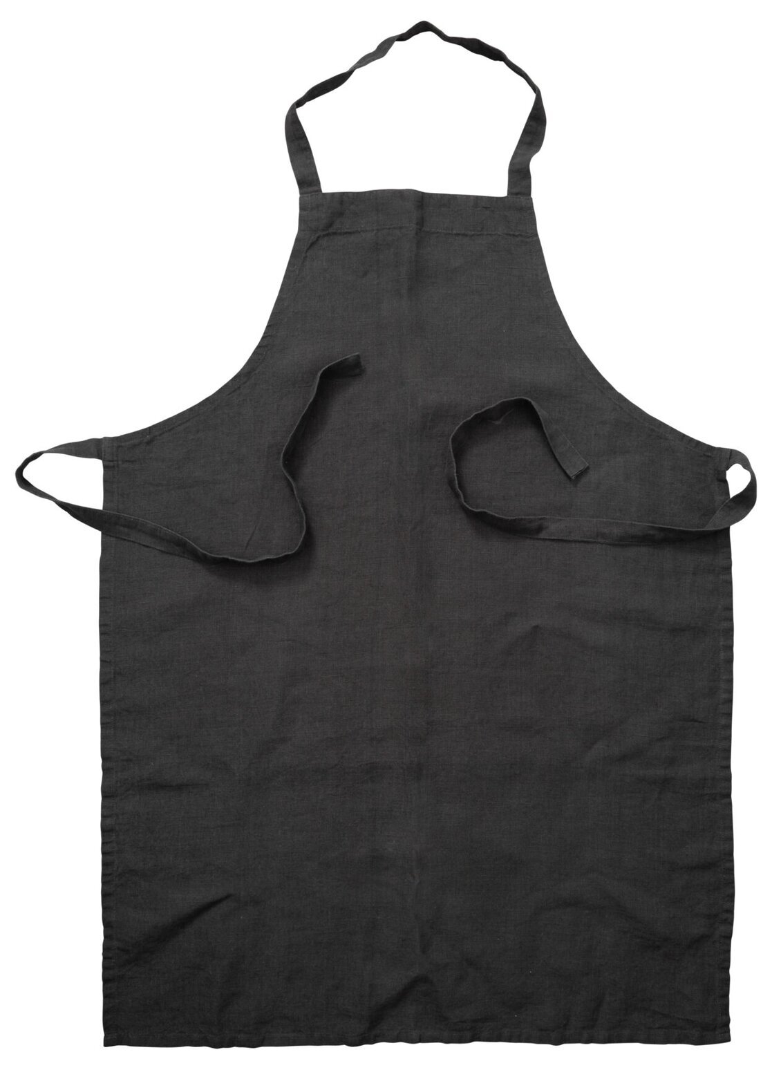 Bilden från Köpstadens sortiment visar ett stilrent förkläde i linne av märket Ernst. Förklädet har en mörkgrå nyans som ger det ett tidlöst och neutralt utseende, vilket gör det lätt att matcha med andra köksdetaljer. Det är skuret i en klassisk design som täcker bröstet och sträcker sig ner till knäna. Materialet, linne, framhävs genom sin något texturerade yta vilket indikerar både hållbarhet och komfort vid användning.