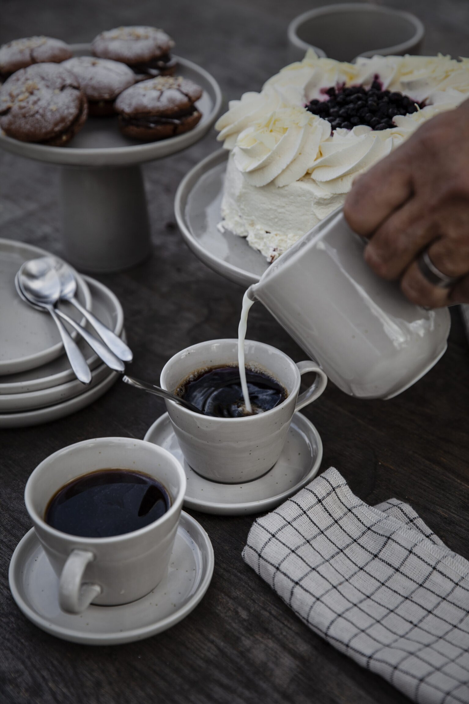 Mjölkkanna i en fin sandgrå nyans med inslag av små prickar. Från Ernst. Läs mer