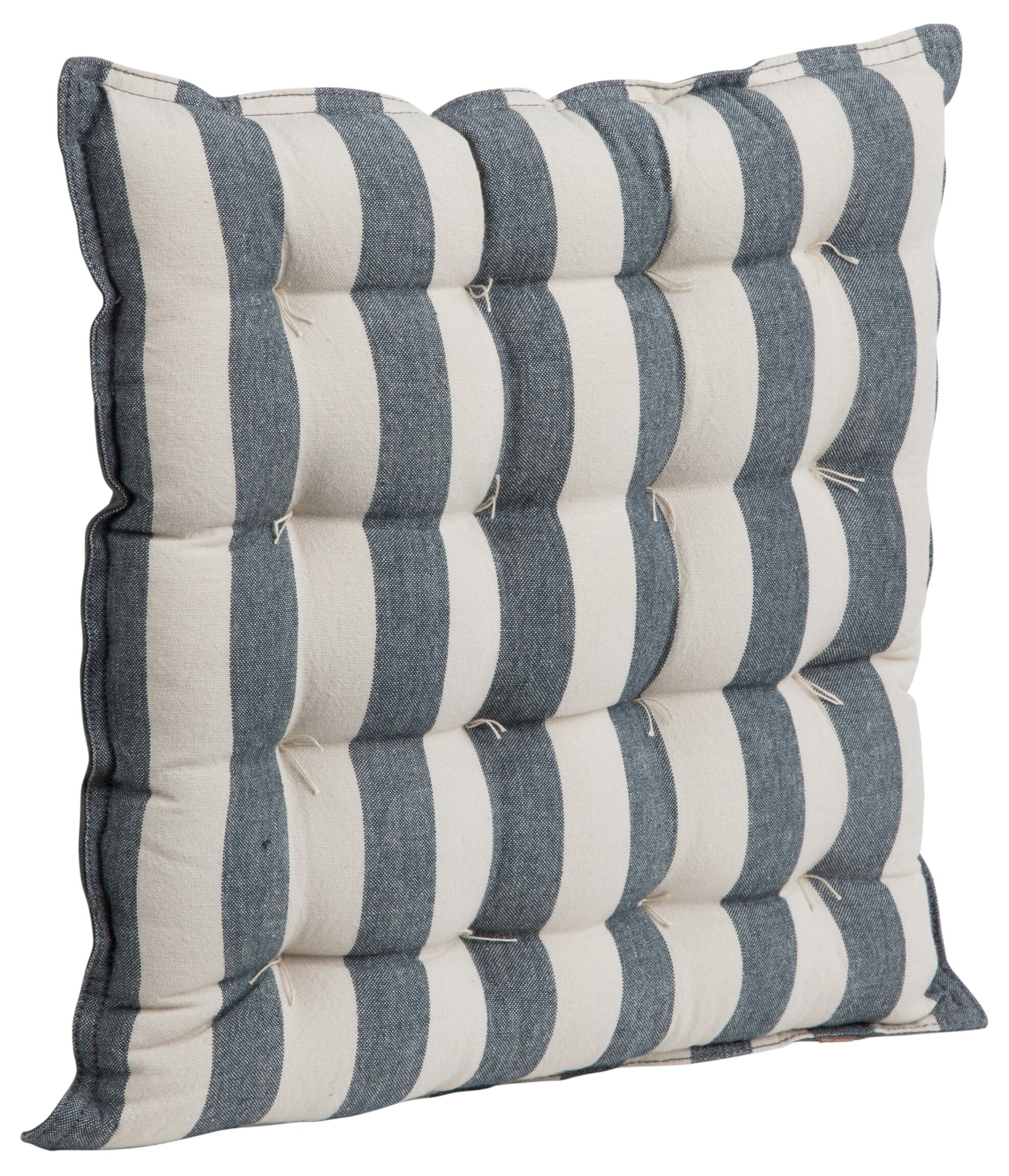 Sittdyna som passar till både stol, bänk eller golv med enfärgad ovansida & randig baksida. På ovansidan sitter det en snygg lädertag med Ernst namn. Passar fint både inomhus till köksstolarna såsom ute i trädgården.