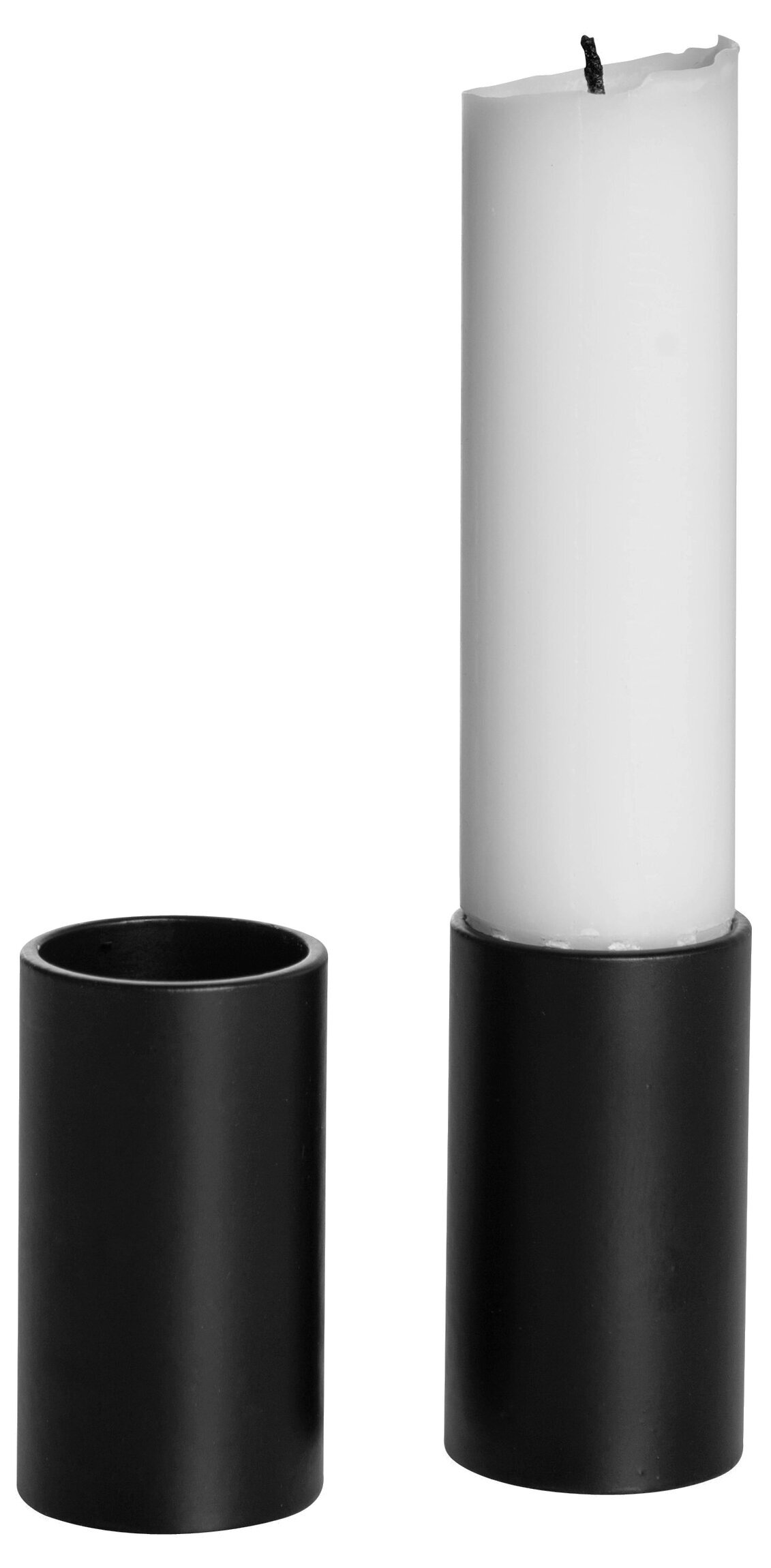 Bilden av Ljusstump Mellan Svart från varumärket Ernst, finns att beskåda på Köpstaden.se, och visar en stilren produkt med en modern touch. I förgrunden ser vi ett svart, cylindriskt ljusstake tillverkad av ett material som ger en matt yta. Denna ljusstake är skapt för att hålla ett blockljus och ger ett stabilt och robust intryck. Ljusstaken har raka linjer och en slät textur, vilket ger ett minimalistiskt och samtidigt funktionellt utseende.
