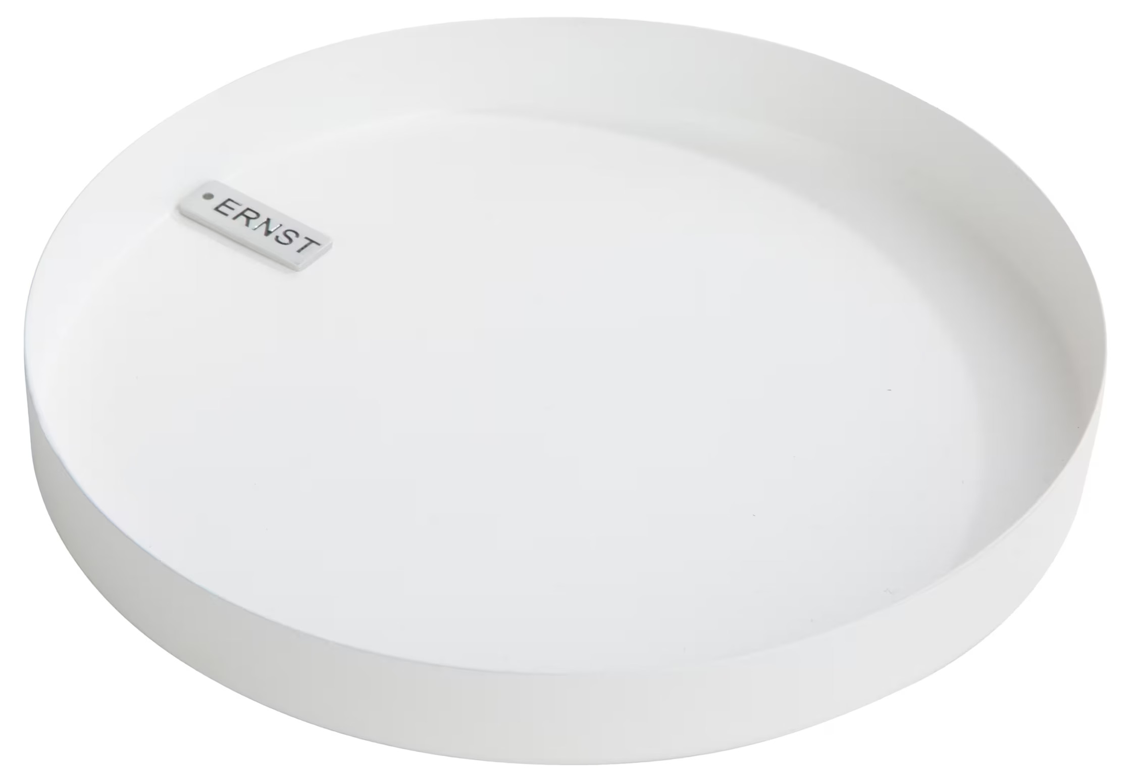 Bilden visar ett runt ljustråg i en klar vit färg, en produkt från Köpstaden.se. Ljustråget, som är en del av Ernsts sortiment, har en enkel och stilren design med en slät yta. Den runda formen ger ett symmetriskt och balanserat intryck, vilket gör att det passar in i olika inredningsstilar.