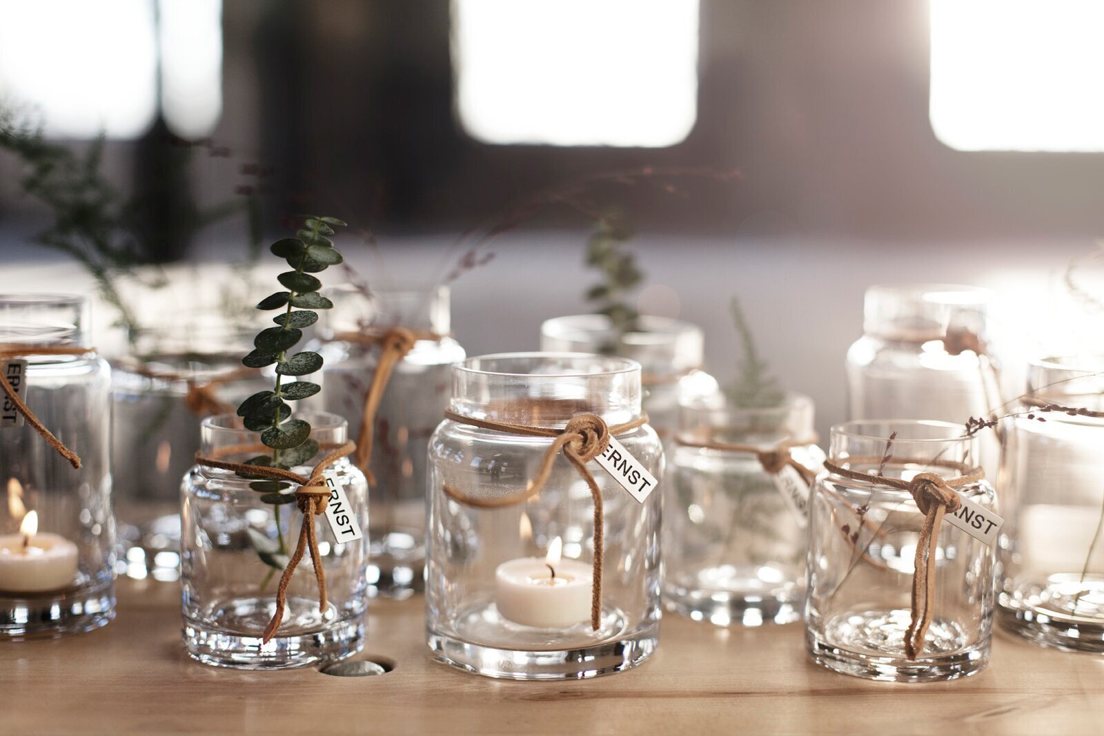 Ljuslykta i glas för värmeljus med läderband & metallbricka graverat med Ernst. Lyktan går oxå använda som en vas. Läs mer