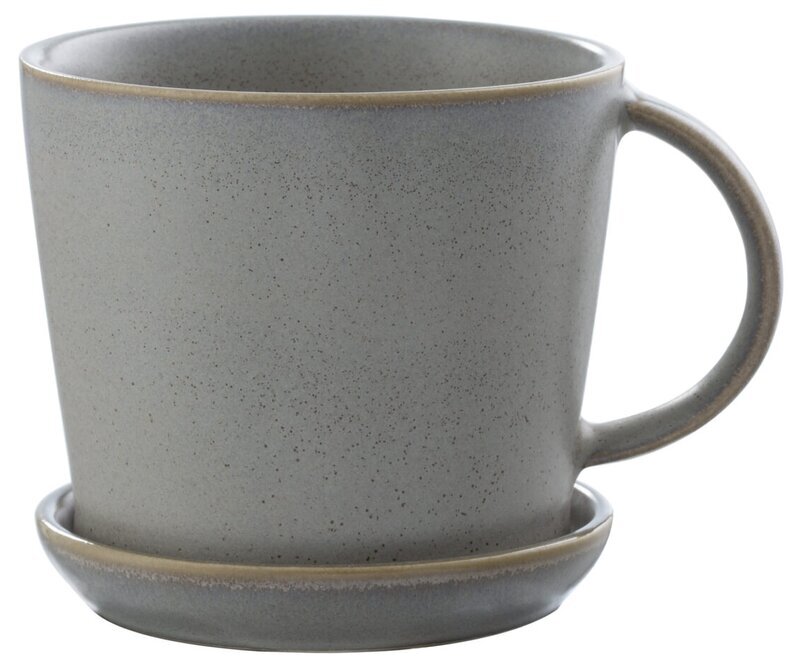 Glaserad tekopp med fat i stengods, finns i flera olika färger & storlekar. Tål maskindisk. Material: Stengods. Mått: Ø 10 x 8,5 cm.