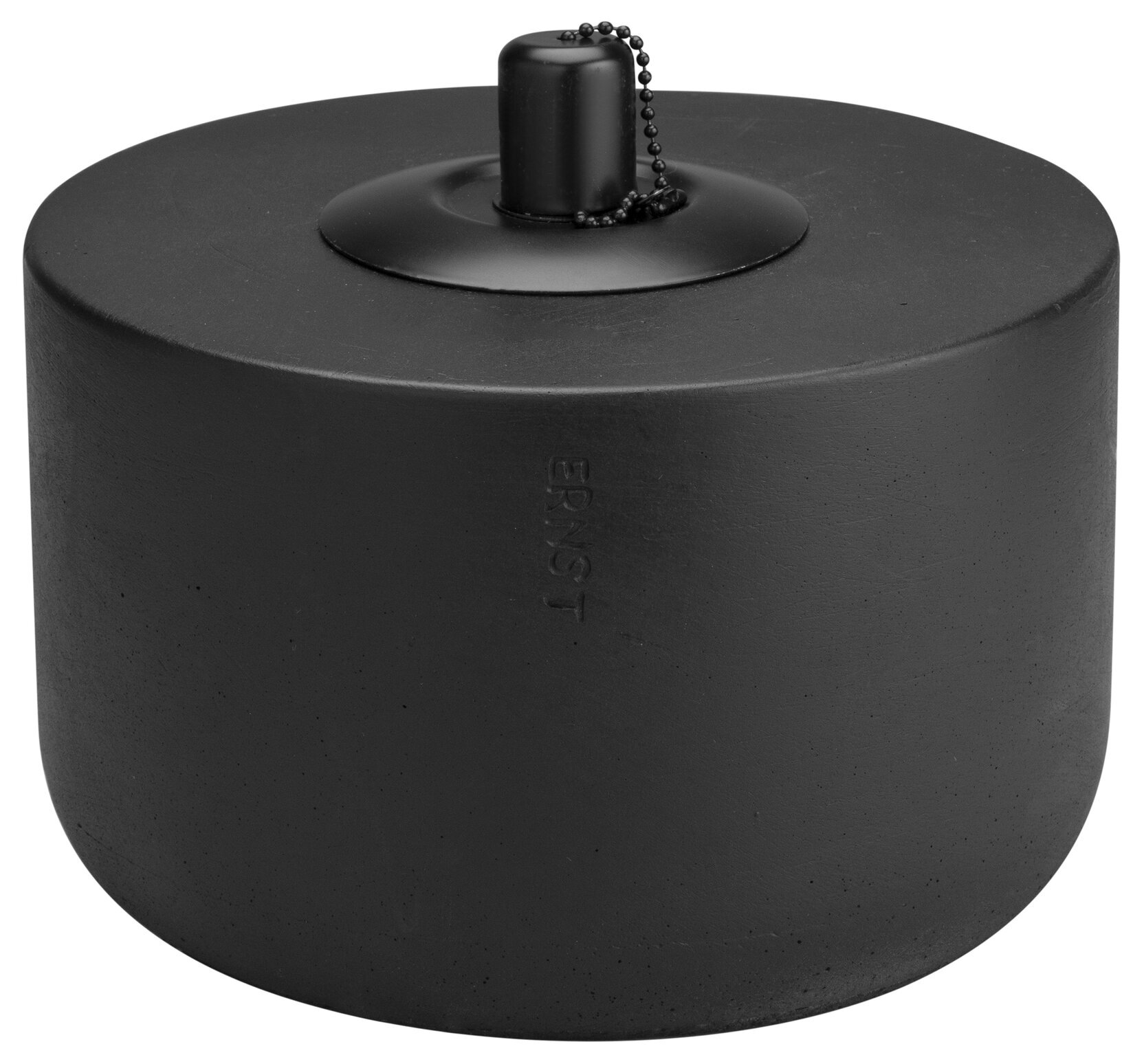 På bilden visas en stilren och enkel oljelykta från varumärket Ernst. Denna produkt, som finns tillgänglig hos Köpstaden.se, är en solid cylinderformad lykta som har en jämn matt finish. Lyktan är övervägande svart, vilket ger den ett diskret och tidlöst utseende, idealiskt för både inomhus- och utomhusmiljöer.