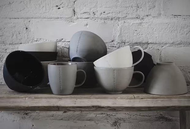 Produktens etikett är diskret ingraverad på skålarnas och muggarna, vilket ger en förståelse för dess ursprung och kvalitet utan att vara påträngande. Denna noggranna detaljeringsgrad visar varumärkets Ernsts uppmärksamhet på detaljer och engagemang för att förena estetik med användbarhet.