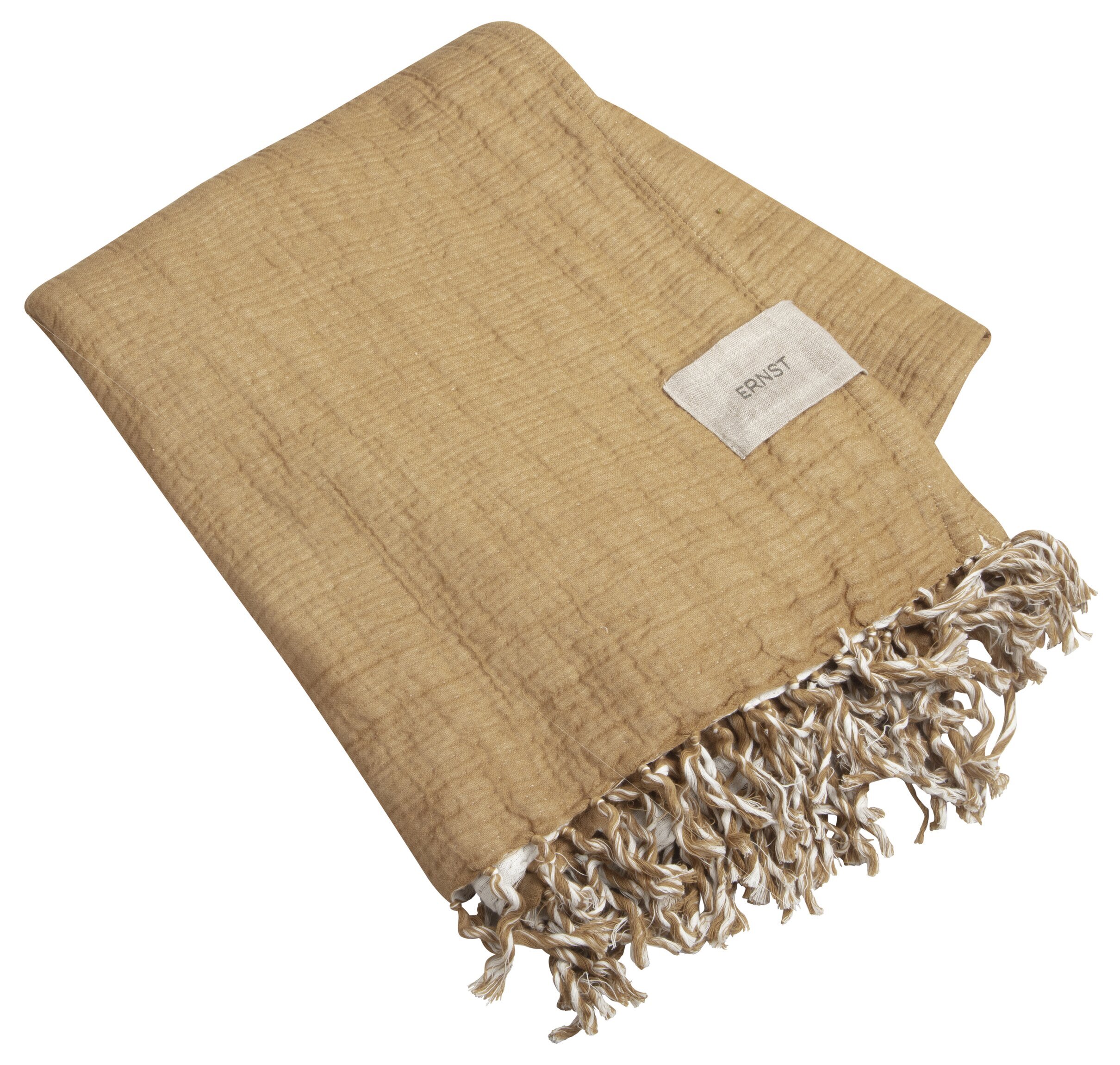 Mjuk pläd i 100% bomull i en vacker jordnära saffransfärg från Ernst höst/vinter kollektion. Läs mer