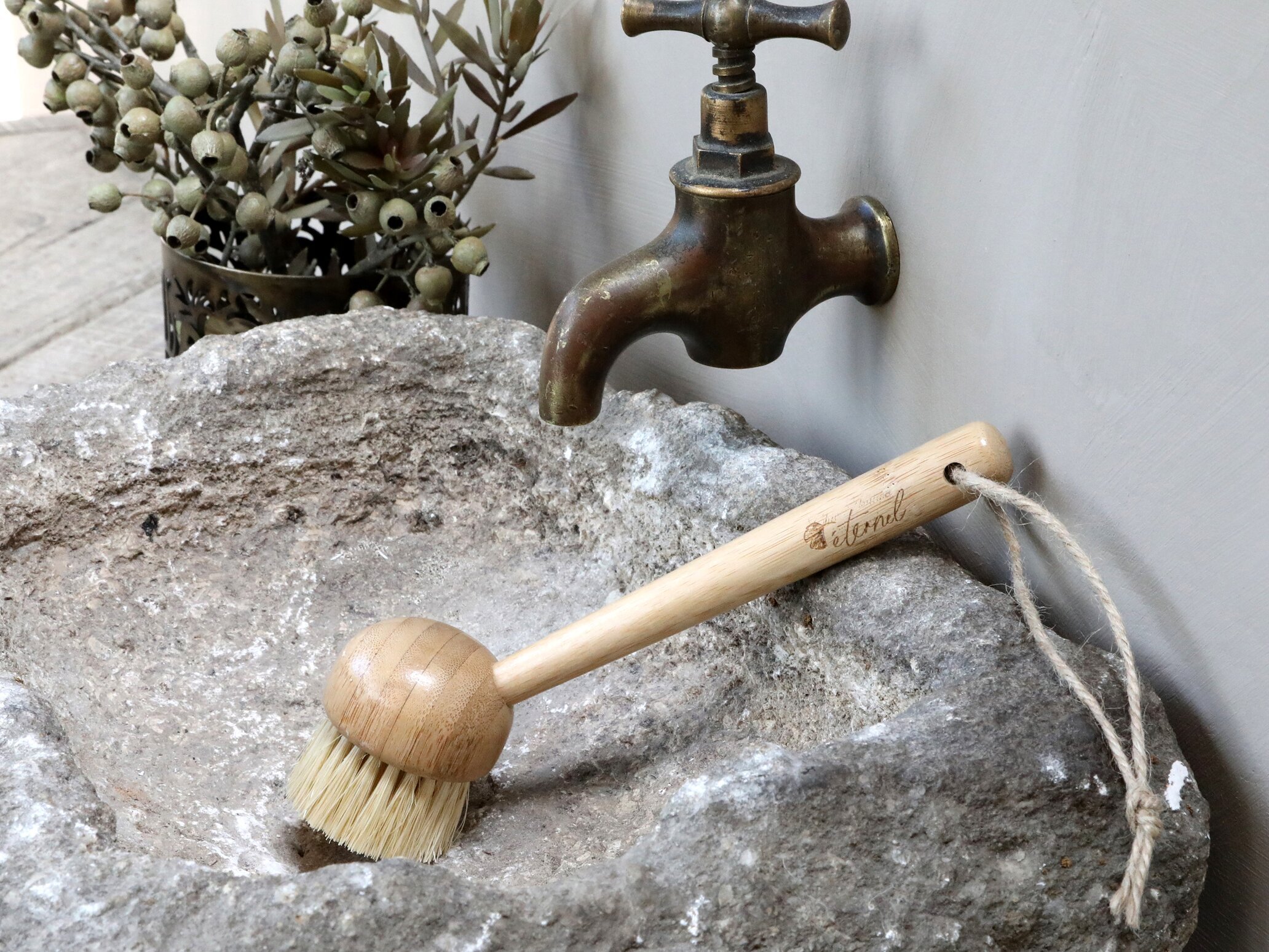 Diskborste på skaft tillverkad av bambu & växtfiber, från Chic Antique.