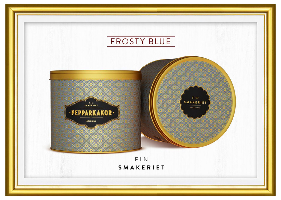 Ångbakade pepparkakor förpackade i en vacker blå plåtburk med gulddetaljer. Från Finsmakeriet. Läs mer
