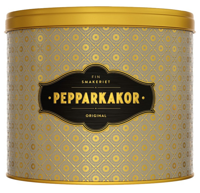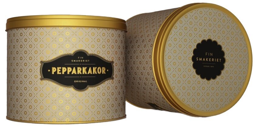 Ångbakade pepparkakor förpackade i en vacker beige plåtburk med gulddetaljer. Från Finsmakeriet. Läs mer