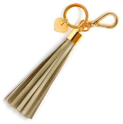 Reflextassel för alla fashionistas! Finns i många olika färgkombinationer och blir en extra glammig detalj på väskan, barnvagnen, nyckelknippan eller jackan. Denna tassel är lite tjockare än originalet med en stilren slät topp i guld samt en berlock i form av ett hjärta. Mått: Tofs: 9 cm.
