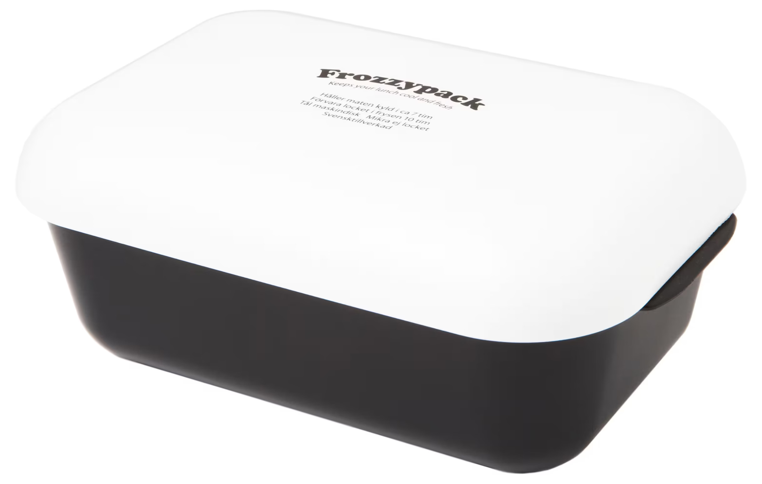 Frozzypack Original är designad för att hålla maten kyld i ca 7 timmar, tack vare en inbyggd kylfunktion i locket, vilket gör den idealisk för luncher på jobbet, i skolan, eller för utflykter. Det svarta handtaget på sidan av lådan är subtilt, men prydligt integrerat i designen och underlättar enkel öppning av locket.