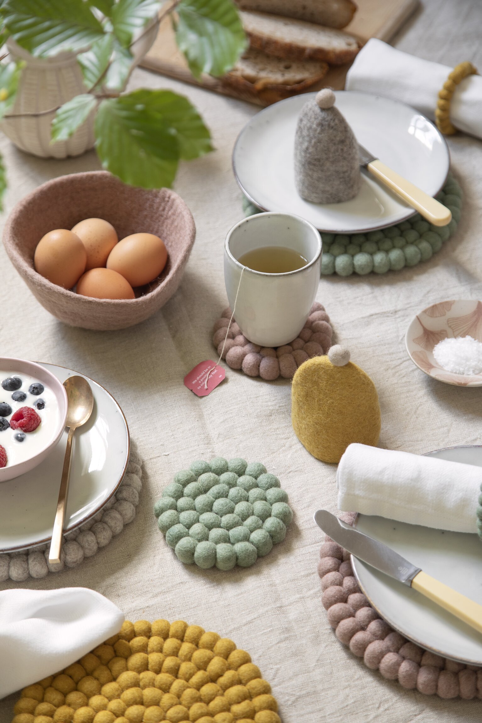 Vackra glasunderlägg i tovad ull, designade i Danmark av Gry & Sif & 100% handgjorda av nepalesiska kvinnor. Varje glasunderlägg är unikt i sitt utförande & det kan därmed skilja i utseende & färg. Säljs i set om 2 stycken.