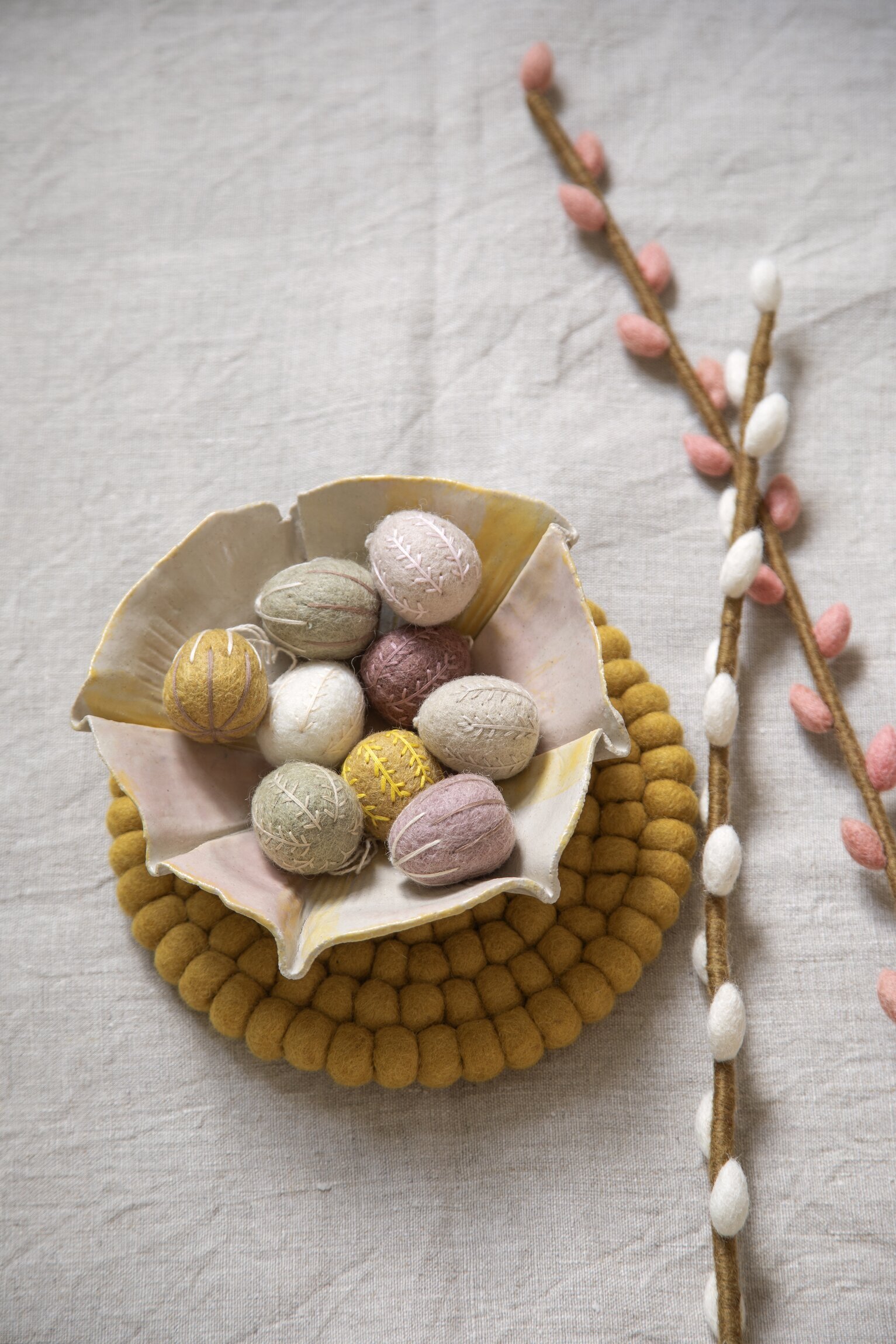 Vackert grytunderlägg i tovad ull, designad i Danmark av Gry & Sif & 100% handgjord av nepalesiska kvinnor. Varje grytunderlägg är unikt i sitt utförande & det kan därmed skilja i utseende & färg.