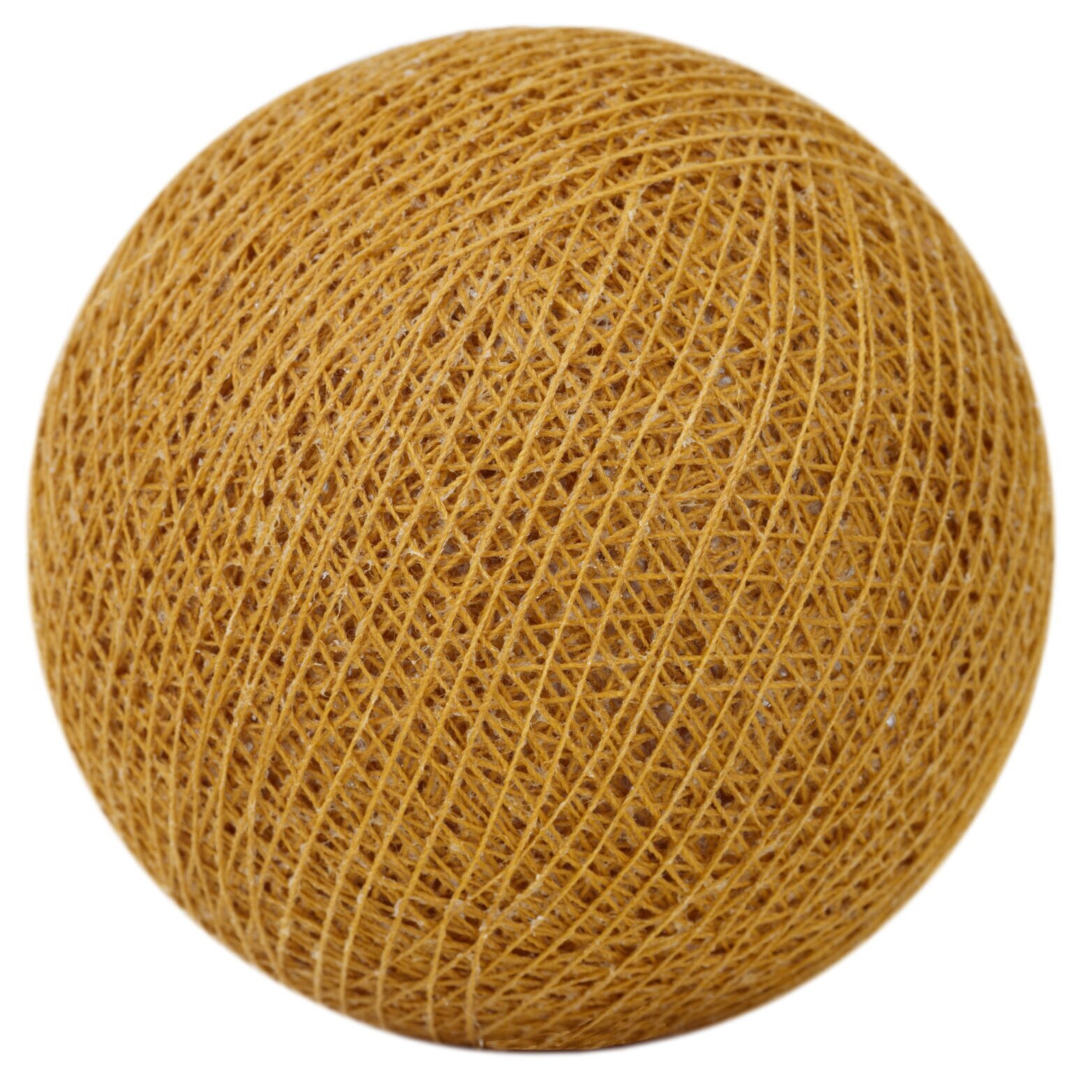 Bilden visar en sfärisk dekorationsboll som återfinns i Köpstaden.se:s breda sortiment av vardagsprylar. Den här produkten, kallad Boll Moleskin från Happy Lights, är en detaljrik skapelse där form och material spelar huvudrollerna. Ytan består av en komplex väv av garn som ligger tätt lindat runt bollen, vilket ger ett intressant texturspel. Garnets färg på bilden är en varm nyans av senapsgul, vilket ger ett intryck av både värme och naturlighet.