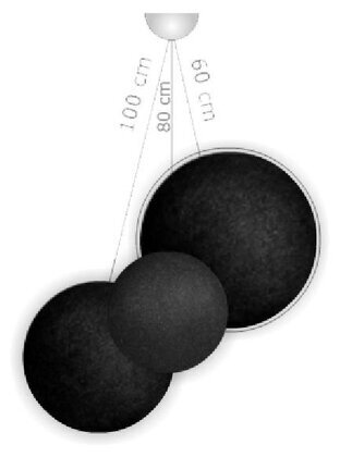 Lamporna har ett minimalistiskt utseende med släta, svarta ytor. Den största lampan, längst till höger, har den längsta upphängningen på 100 cm. Den mellanliggande lampan är kortare med 80 cm och den minsta hänger 60 cm från taket. Denna variation i höjd skapar en tredimensionell aspekt som drar blickarna till sig och tillför djup till rummet där de installeras.