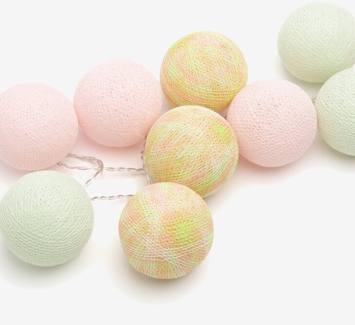Använd ljusslingorna som dekoration, mysbelysning, till festligheter mm. Fin att dekorera på dukat bord, i barnrum, sovrum mm. Bollarna är virade av färgat garn och är ca 6-7 cm i diameter. Finns en mängd olika kombinationer & storlekar där man kan välja vanlig stickkontakt eller USB-kontakt. Man sätter själv ihop ljusslingan med bollarna i den ordning som man önskar ha dem.