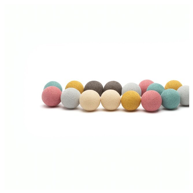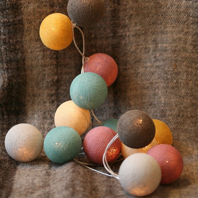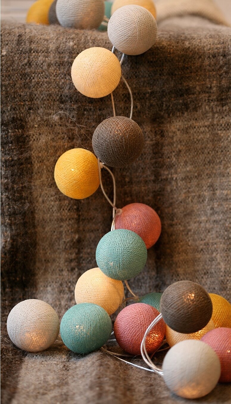 Använd ljusslingorna som dekoration, mysbelysning, till festligheter mm. Fin att dekorera på dukat bord, i barnrum, sovrum mm. Bollarna är virade av färgat garn och är ca 6-7 cm i diameter. Finns en mängd olika kombinationer & storlekar där man kan välja vanlig stickkontakt eller USB-kontakt. Man sätter själv ihop ljusslingan med bollarna i den ordning som man önskar ha dem.