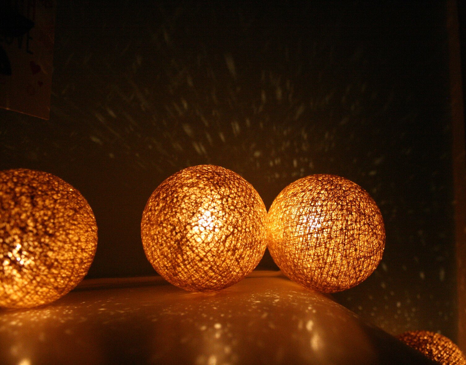 Dessa underbara ljusslingor från Happy Lights kommer förpackade i en box innehållande 35 stycken bollar samt medföljande ljusslinga med 2 stycken extra lampor. Använd ljusslingorna som dekoration, mysbelysning, till festligheter mm. Fin att dekorera på dukat bord, i barnrummet osv. Bollarna är virade av färgat garn och är ca 6-7 cm i diameter. Finns en mängd av olika kombinationer & denna boxen innehåller färgen Gold. Man sätter själv ihop ljusslingan med bollarna i den ordning som man vill ha dem. Själva ljusslingan är 4,80 meter & sladden har en vanlig vägkontakt så någon transformator behövs ej. CE-märkt.