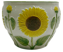 Låt hemmet blomstra med denna vackra kruka från I Am Interior – framtagen i samarbete med Karl Fredrik på Eklaholm. Den handmålade solrosen sprider glädje och liv, perfekt för att ge fönsterbrädan eller uteplatsen en somrig känsla året om. Med sin charmiga design och rustika känsla är den lika fin med som utan växt.