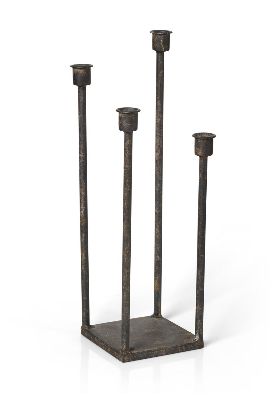 Bilden från Köpstaden.se visar en adventsljusstake från I AM Interior. Denna ljusstake är en fin representant för robust och stilren design. Ljusstaken har en fyrkantig bas som ger stabilitet och stadga, vilket är viktigt för säker placering av levande ljus. Från basen sträcker sig fyra metallstänger uppåt och utmynnar i ljushållare. Dessa stänger är av varierande höjd, vilket skapar en dynamisk och intressant profil.