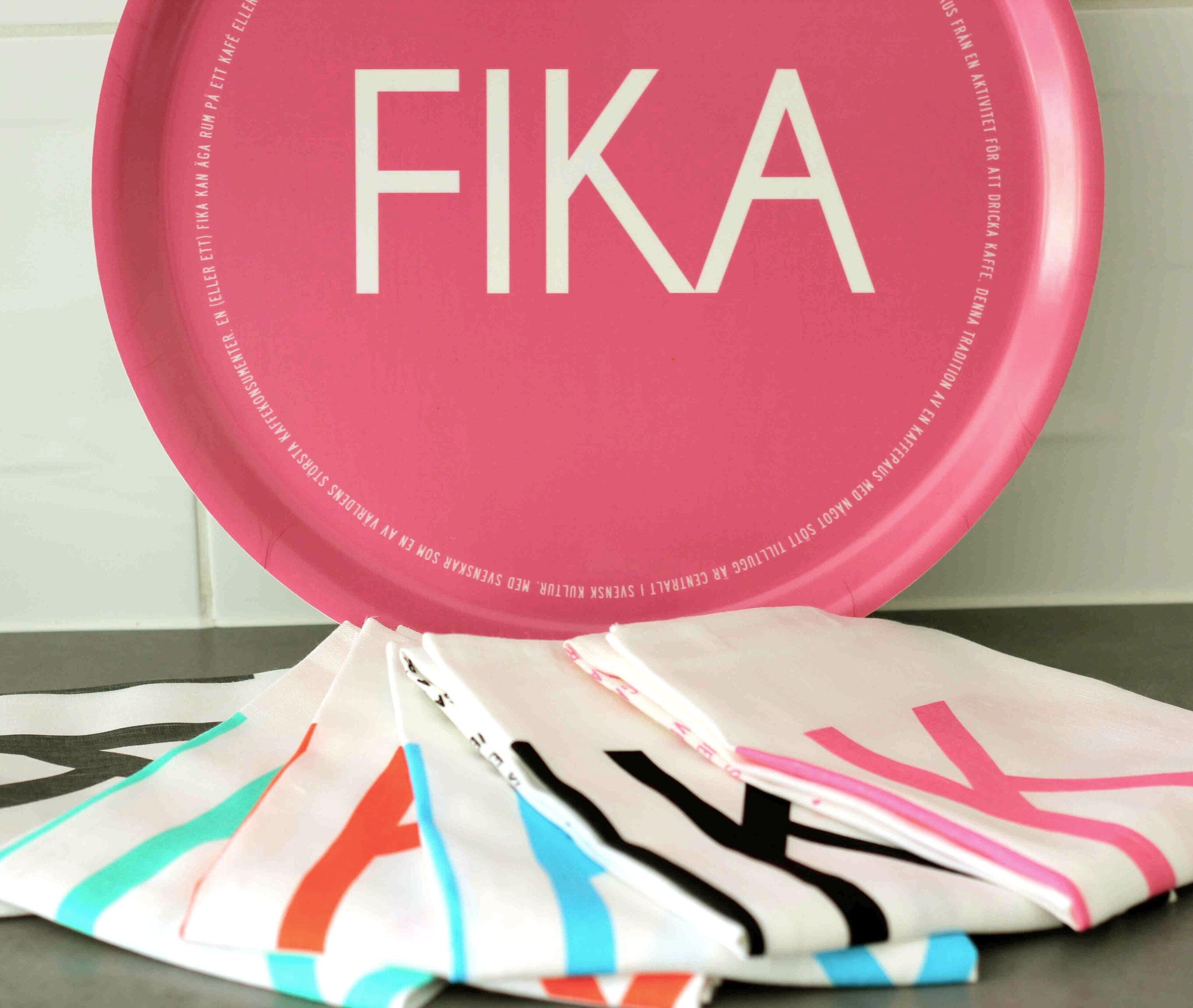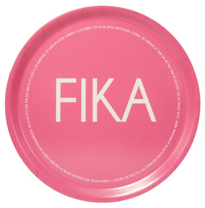 Serveringsbricka med texten FIKA. Brickan är i björklaminat & tillverkad i Sverige. Fika är en social institution i Sverige. Läs mer
