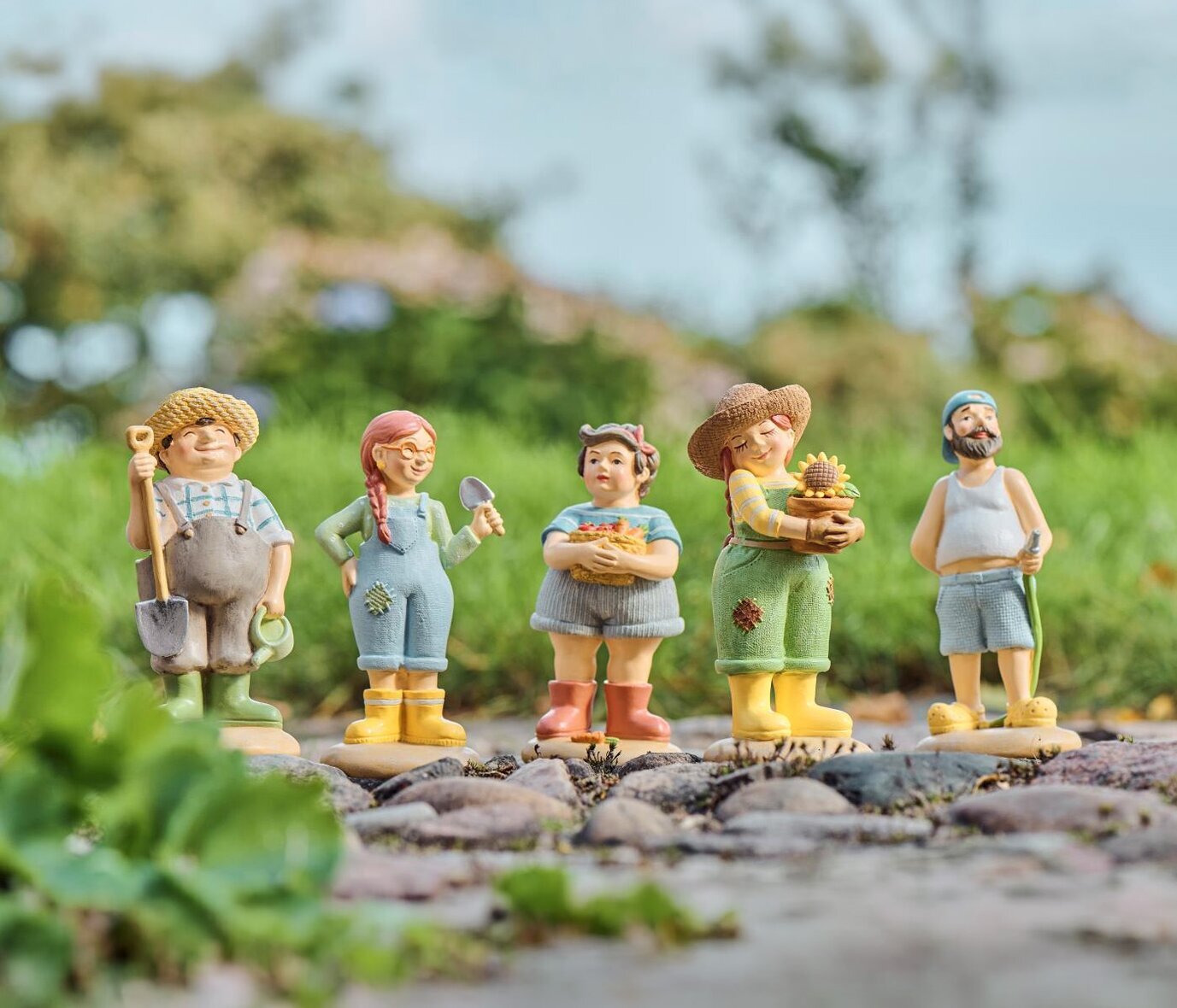 De här härliga trädgårdsmästarna är en riktig glädjespridare i inredningen! Med sina avslappnade poser, charmiga detaljer och tydliga sommarkänsla blir de ett lekfullt blickfång – perfekta i badrummet, på en hylla eller i sommarstugan.