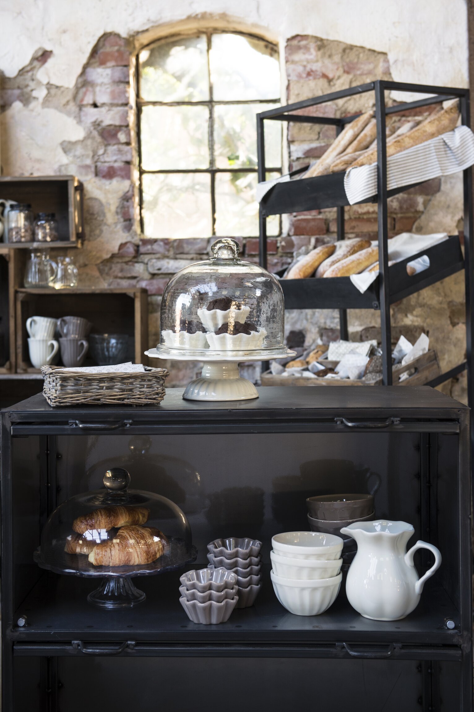 Bilden från Köpstaden.se fångar en charmig butiksmiljö där en mångsidig mix av produkter visas upp mot en rustik bakgrund. Huvudfokuset ligger på en elegant glaskupa från det välrenommerade märket IB Laursen, som varsamt placerats på en solid piedestal. Glaskupan är rund och genomskinlig, vilket gör det möjligt att se de hembakade godsakerna som ligger skyddade under den. Denna glaskupa förknippas ofta med stil och funktion, perfekt för att framhäva olika bakverk.