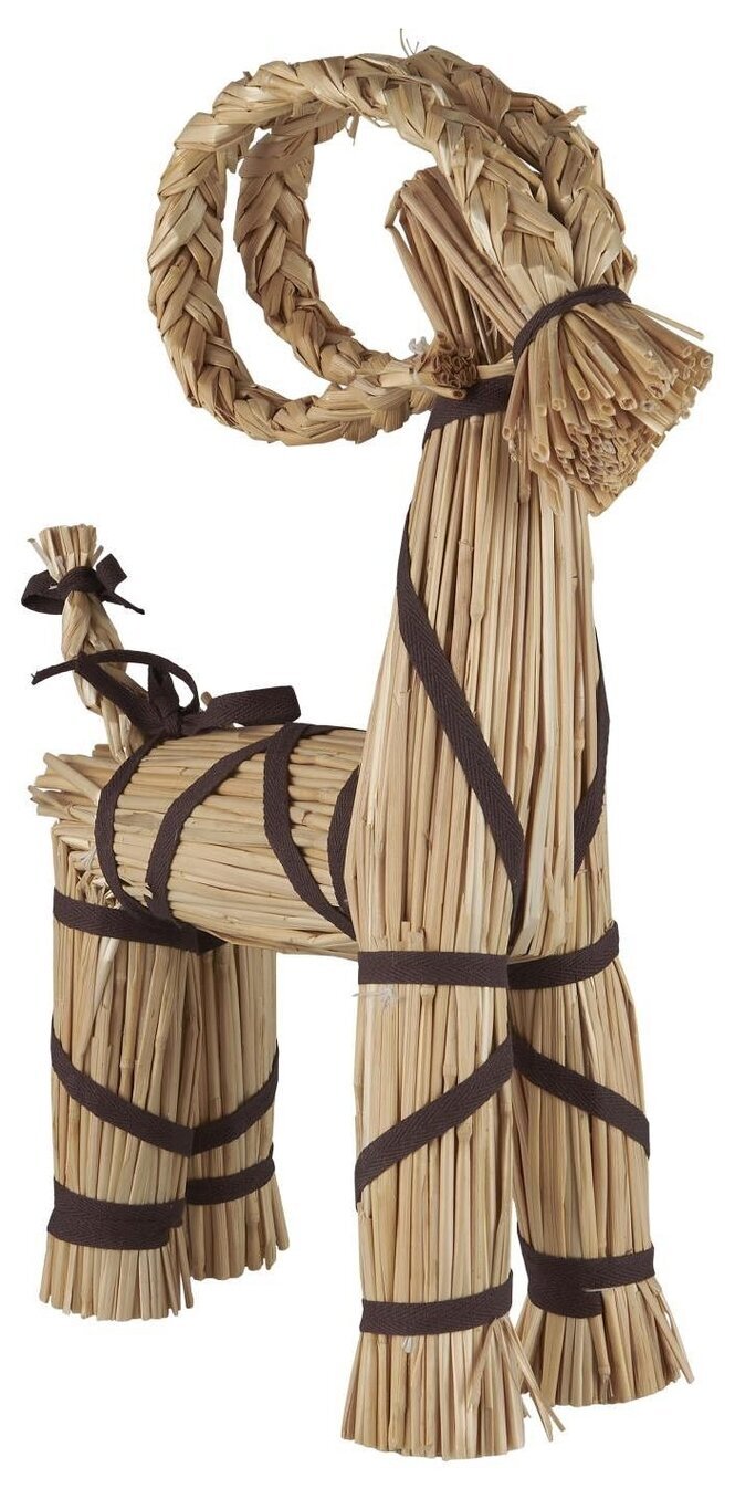Den handtillverkade halmbocken har ett unikt och charmigt uttryck, där färg, form och utseende kan variera något. Benens längd och rakhet kan skilja sig, vilket ibland påverkar stabiliteten – men detta kan oftast enkelt justeras vid behov. Varje bock är ett gediget hantverk med sin egen karaktär.