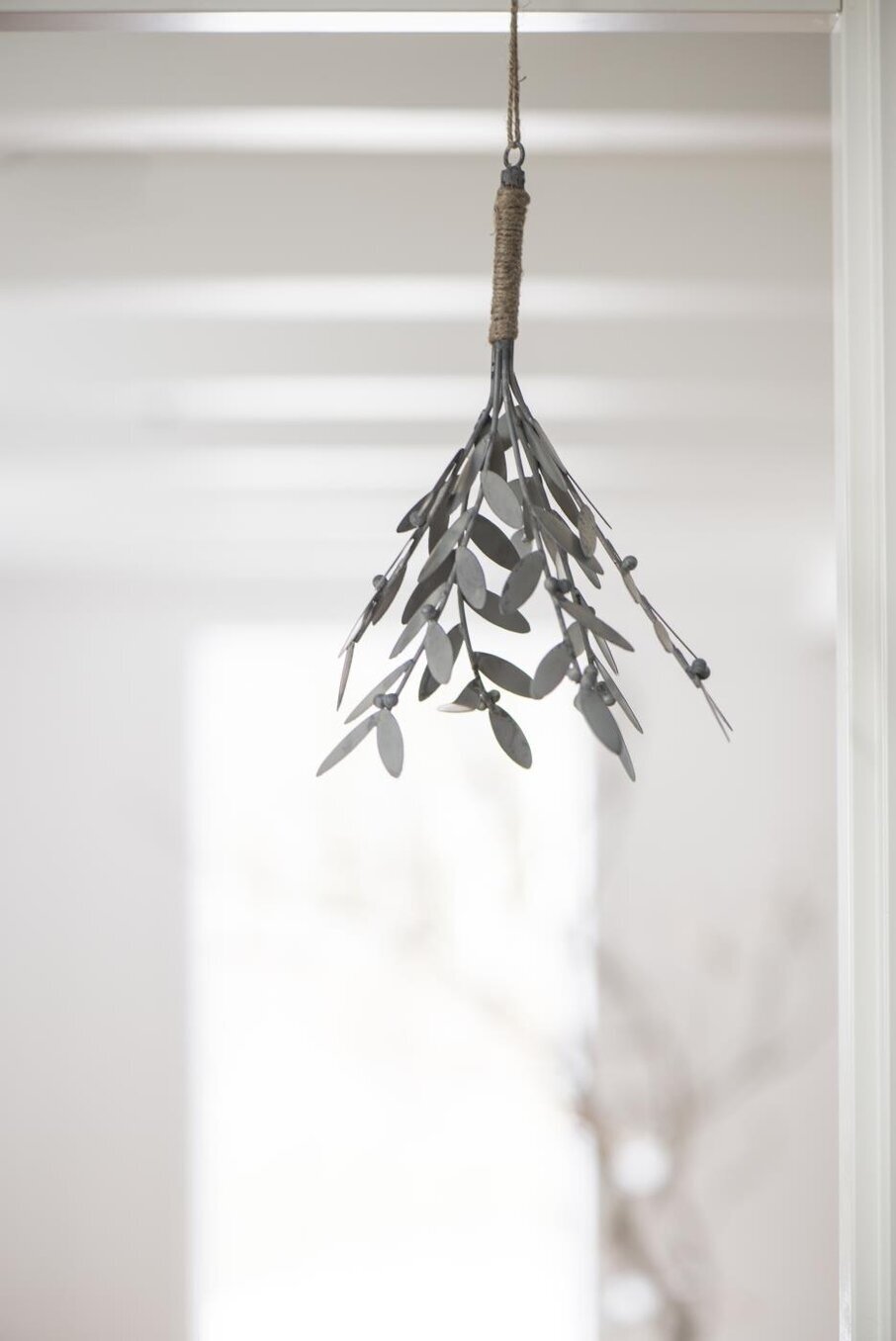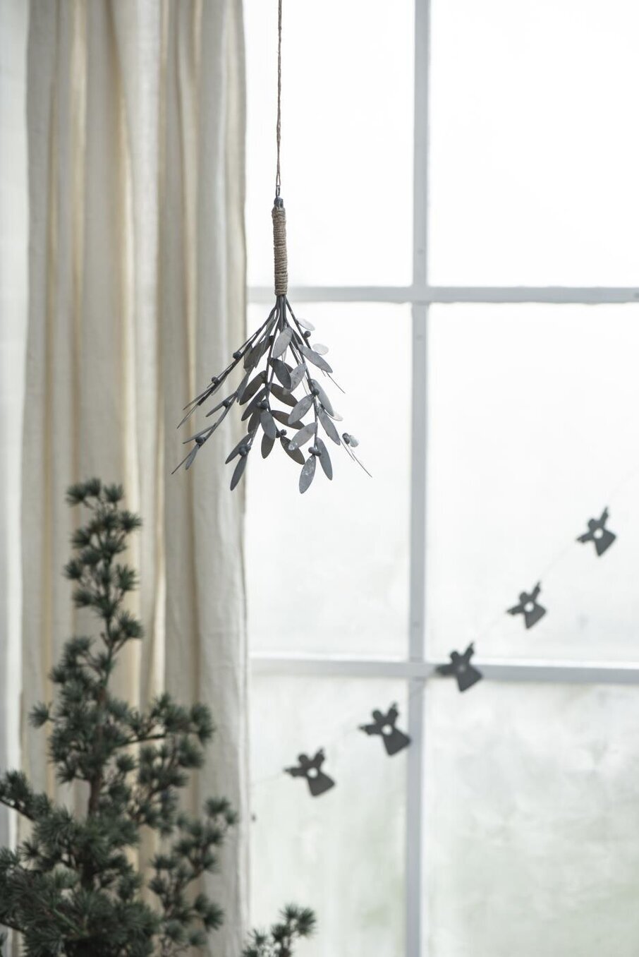 Vacker juldekoration, mistel i zink att hänga över bl a dörr. Repband medföljer. Läs mer