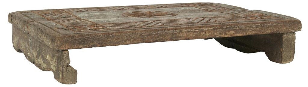Träbricka med handgjorda träsniderier tillverkade av återvunnet trä från Indien. Det kan förekomma sprickor, slitningar, färgrester samt skillnader i storlek då varje bricka är unik.