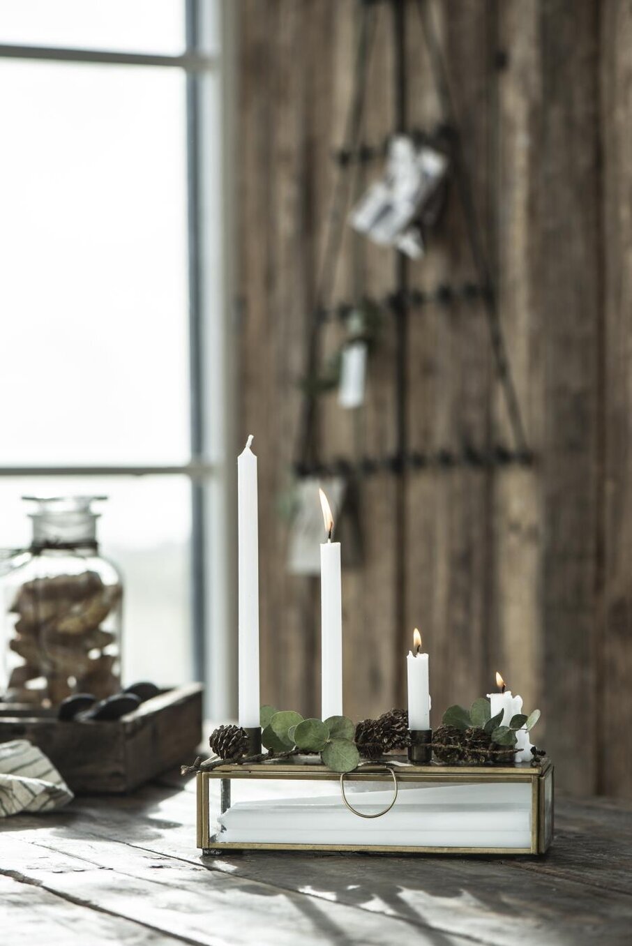 Vacker adventsljusstake i glas & svart metall med plats för julgransljus. Läs mer