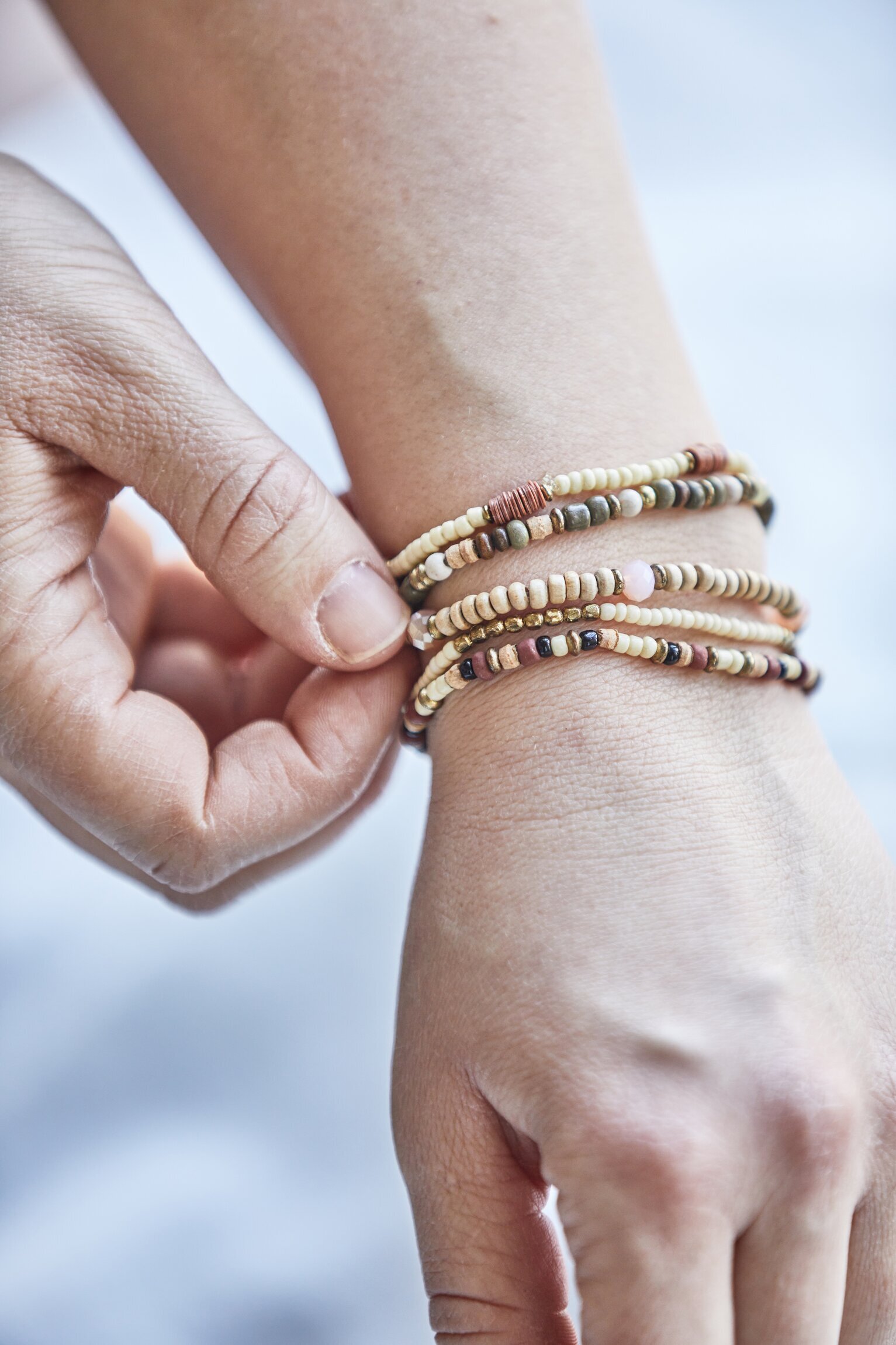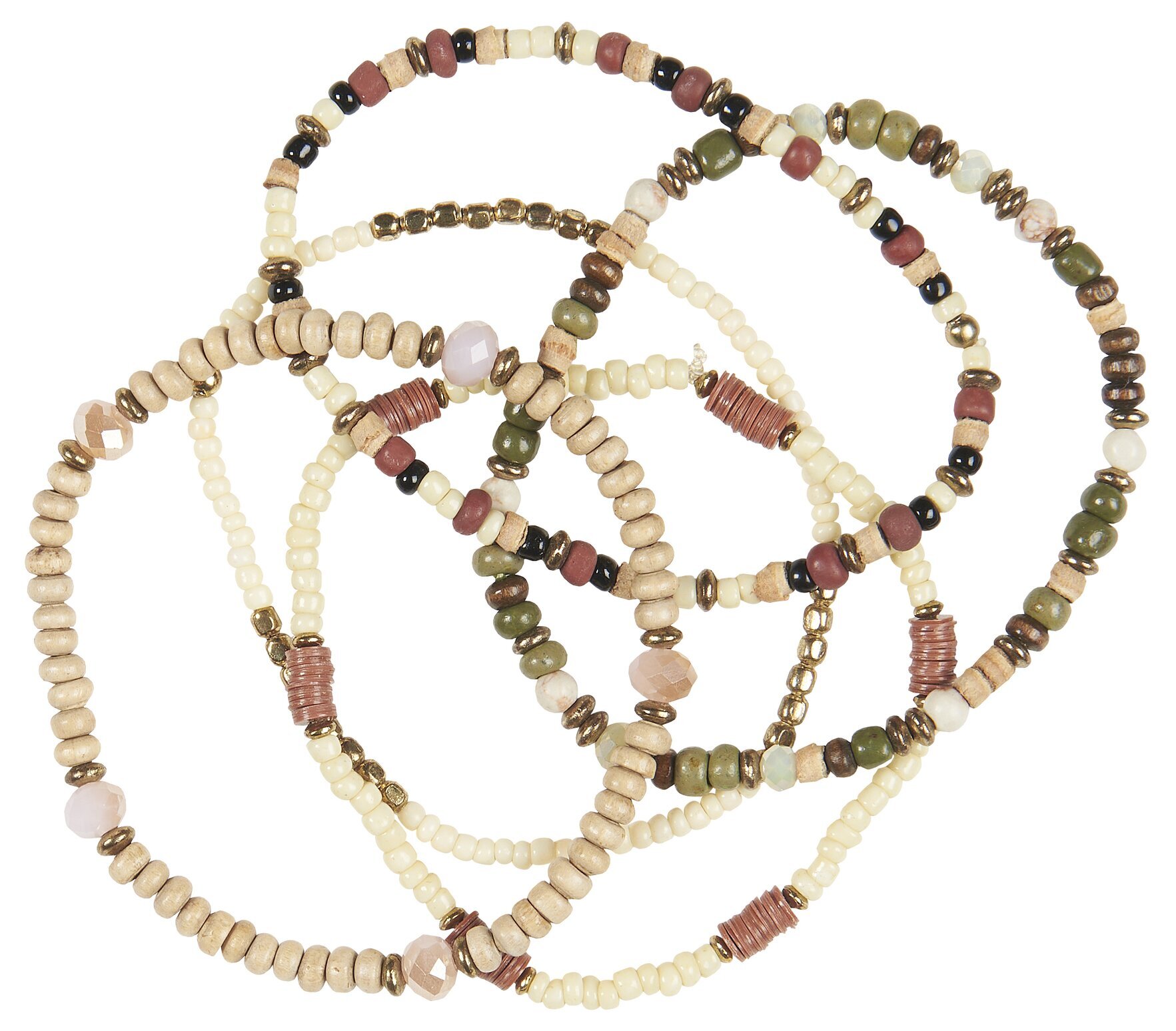 Armband med vackra trä/glaspärlor i set om 5 stycken från IB Laursen.