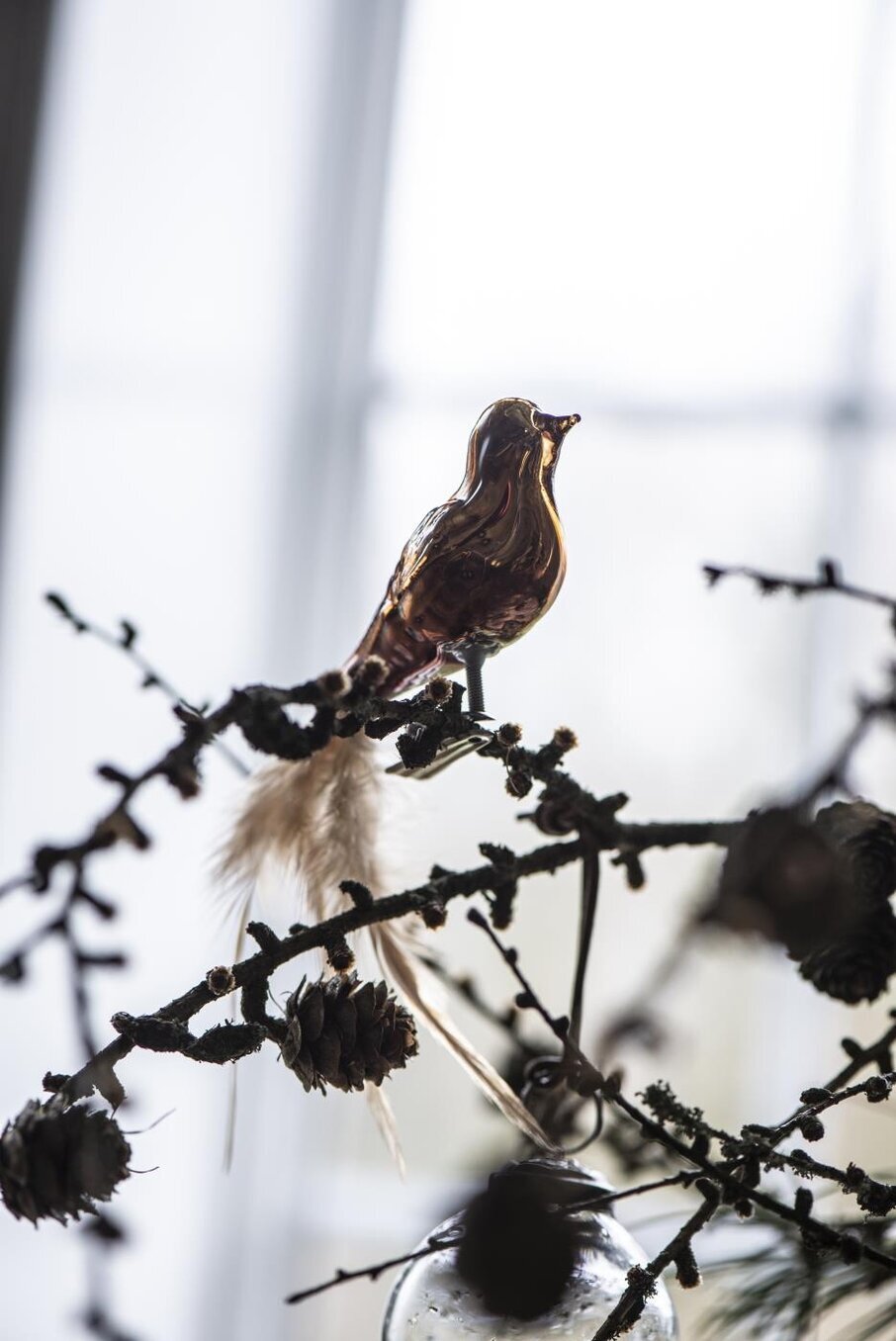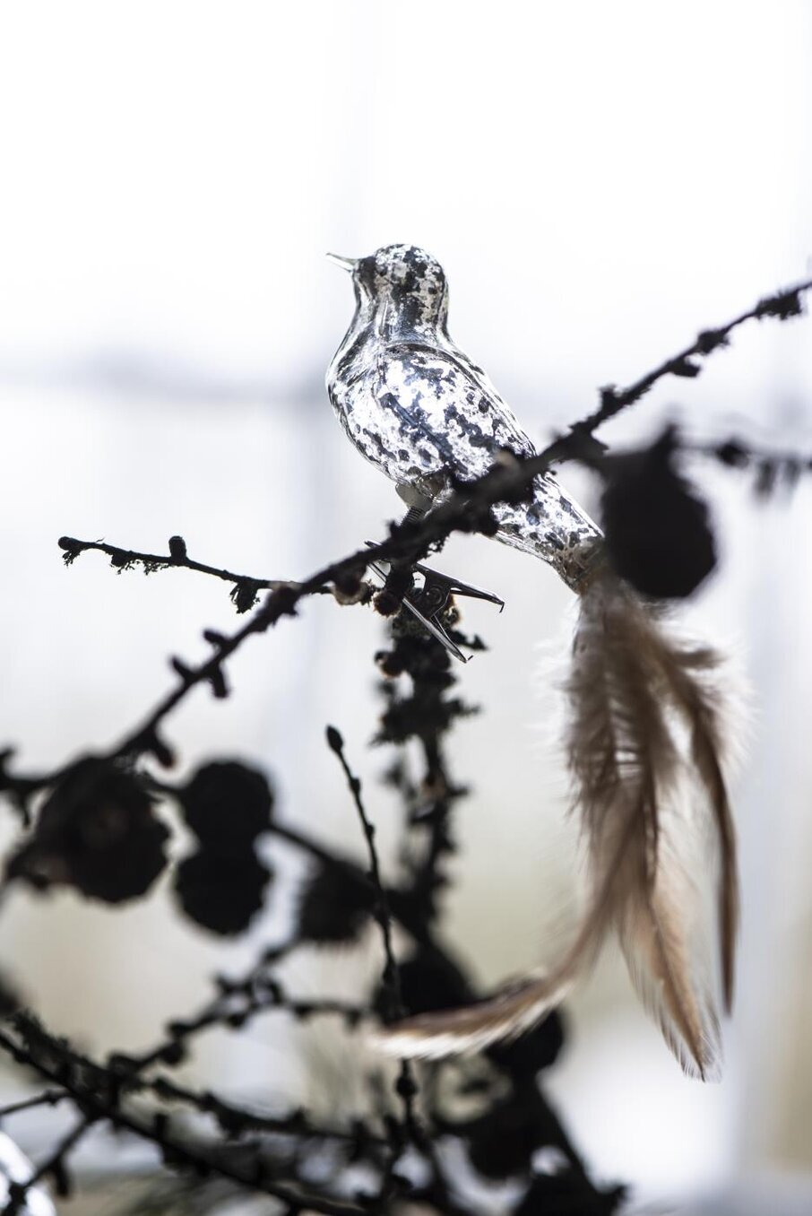 Dekorationsfågel med metallclip, en fin detalj att fästa i trollhassel, granen eller i påskriset. Finns i färgerna guld & silver.