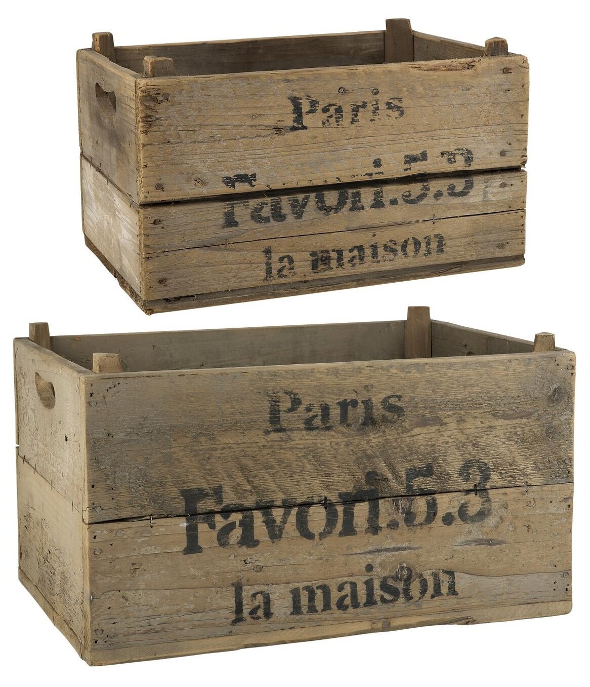 Vacker trälåda med handtag & text - Paris Favori.5.3 la maison. Finns i två olika storlekar. Trälådorna är unika & skiljer sig åt i sitt utförande.