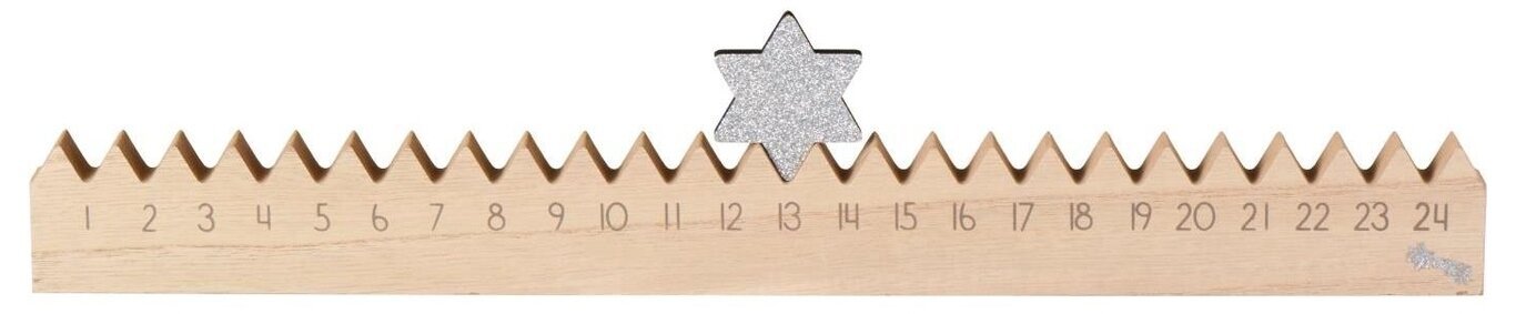 En charmig adventskalender i trä med små siffror från 1 till 24. Flytta den lilla stjärnan dag för dag och gör nedräkningen till julafton både rolig och stämningsfull. En tidlös dekoration som sprider julkänsla år efter år och blir en mysig tradition för hela familjen.