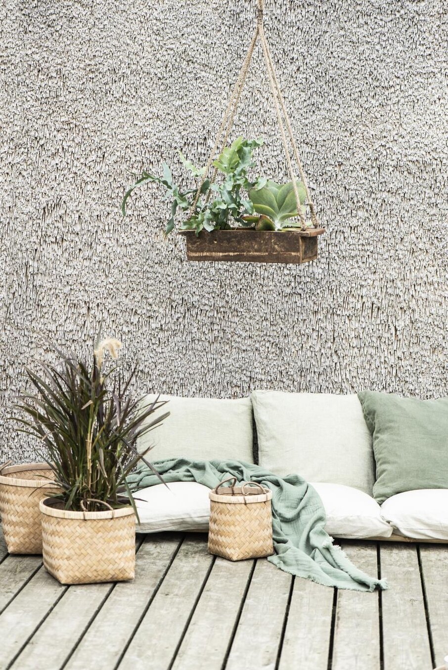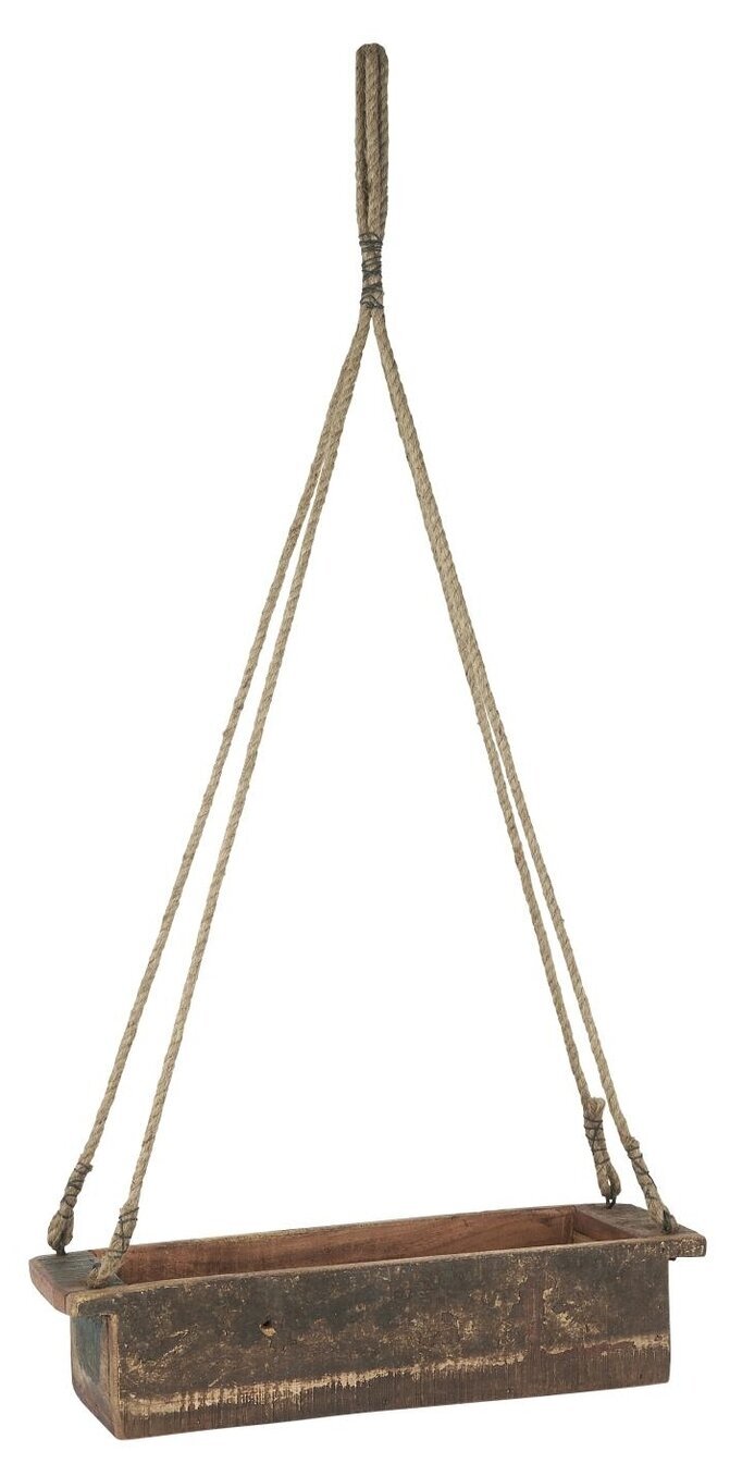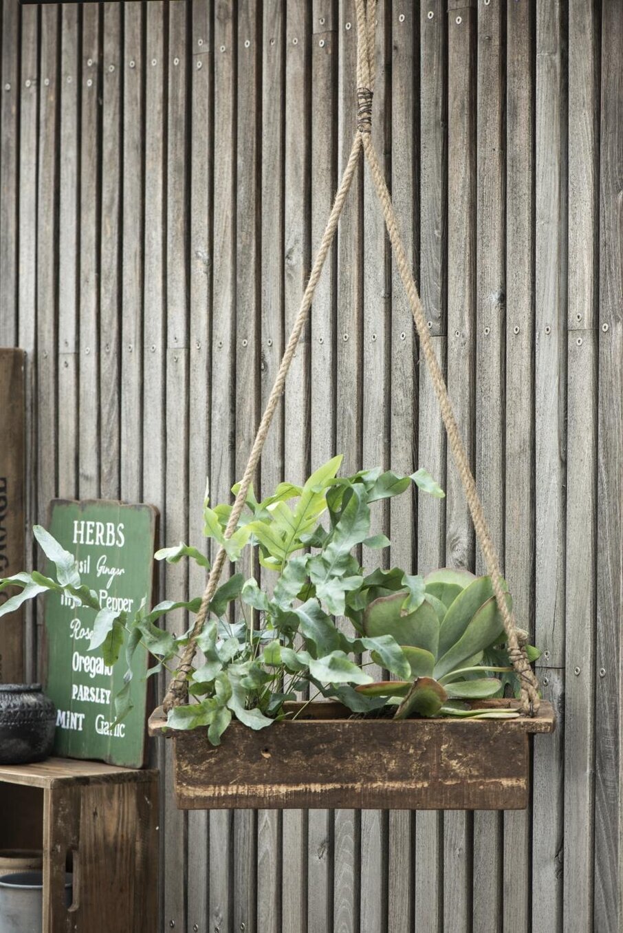Hängande träbricka med jutesnören till växter från ib Laursen. Träbrickan är tillverkat av återvunnet trä från bl a rivningsmaterial. Det kan förekomma sprickor, slitningar samt skillnader i utseende då varje låda är unik.