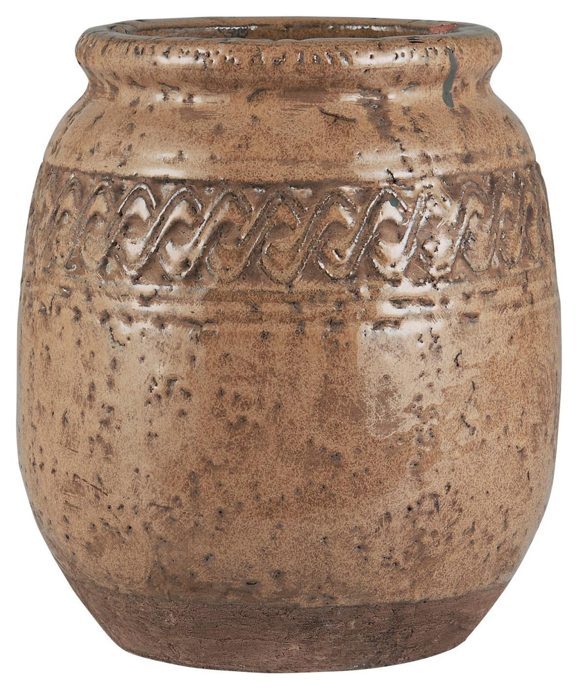 En tidlös keramikkruka med vacker glaserad yta och dekorativ kant. Den rustika känslan gör den lika fin i fönstret som på uteplatsen. Läs mer