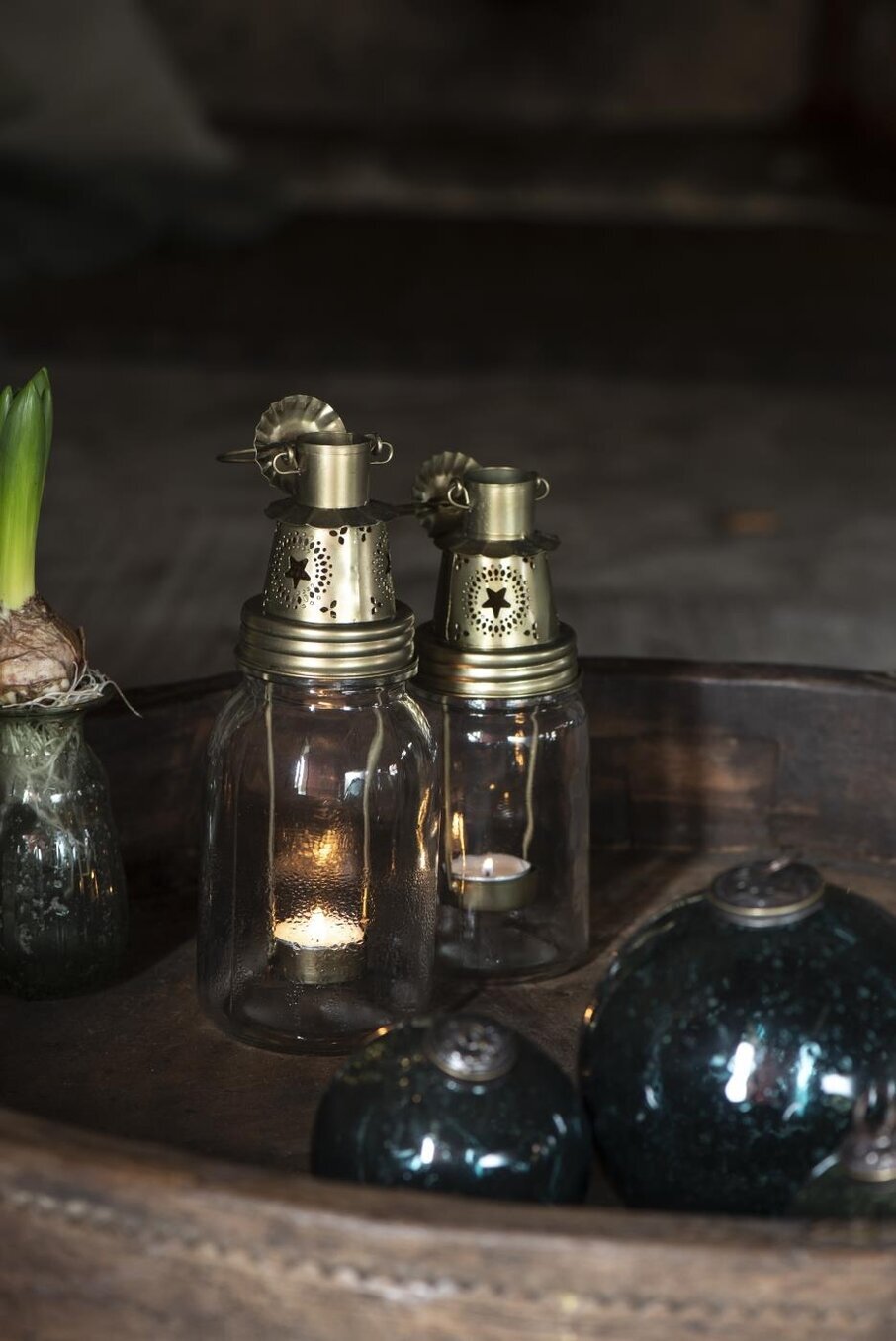 Hängande ljuslykta med plats för värmeljus i en fin guldnyans från IB Laursen. Läs mer