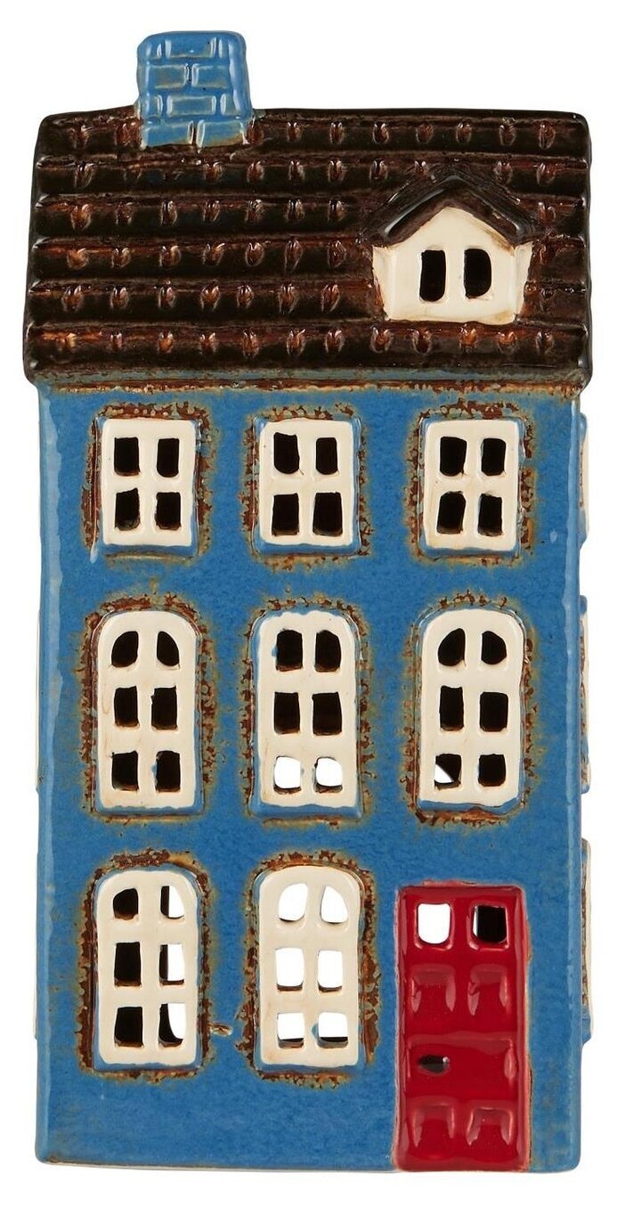 Dekorativ ljuslykta i en fin blå nyans med röd dörr. Finns i flera olika modeller & storlekar. Läs mer