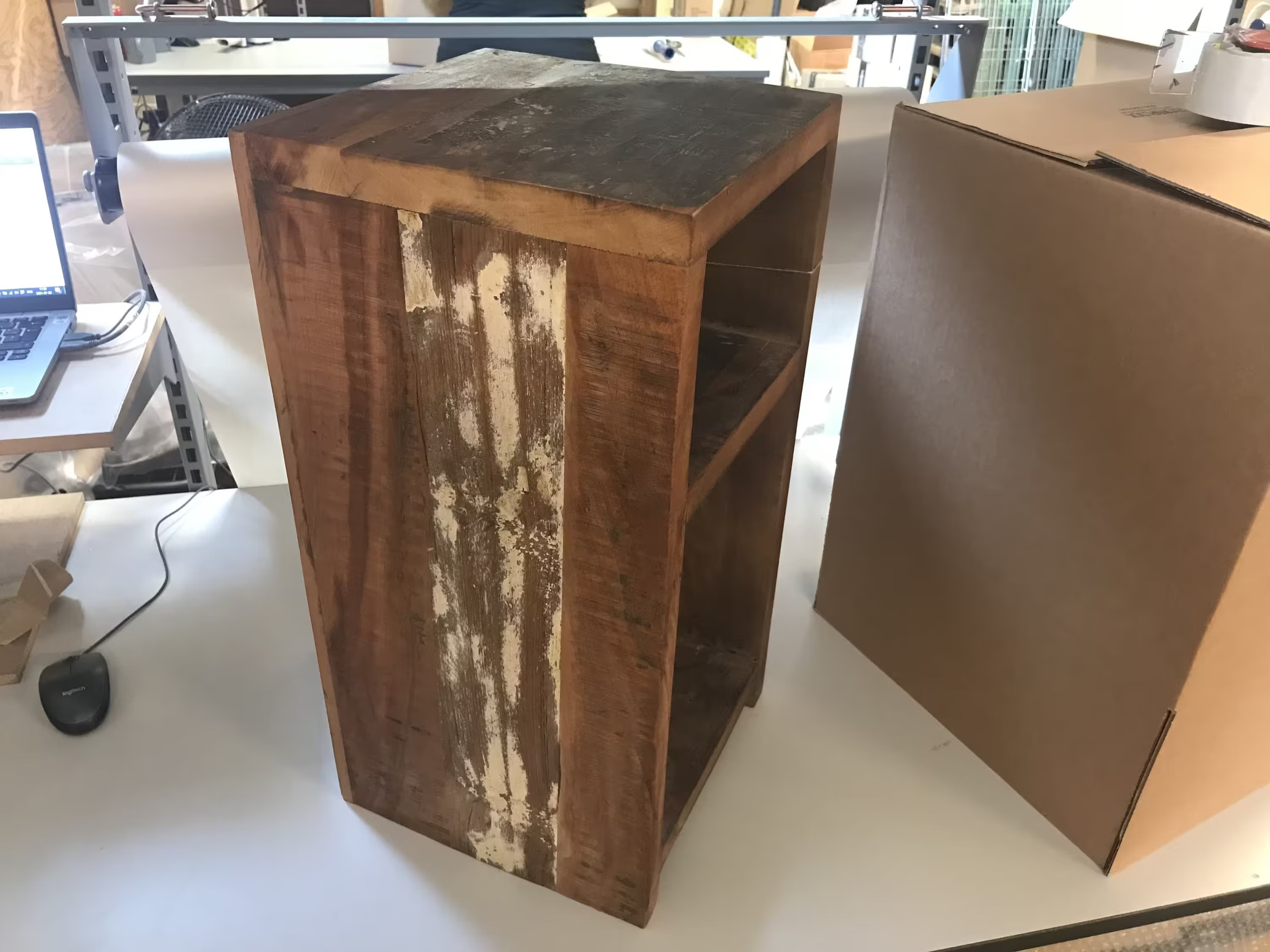 Sidobord/sängbord tillverkat i återvunnet trä. Varje möbel unik i sin form & utseende. Läs mer