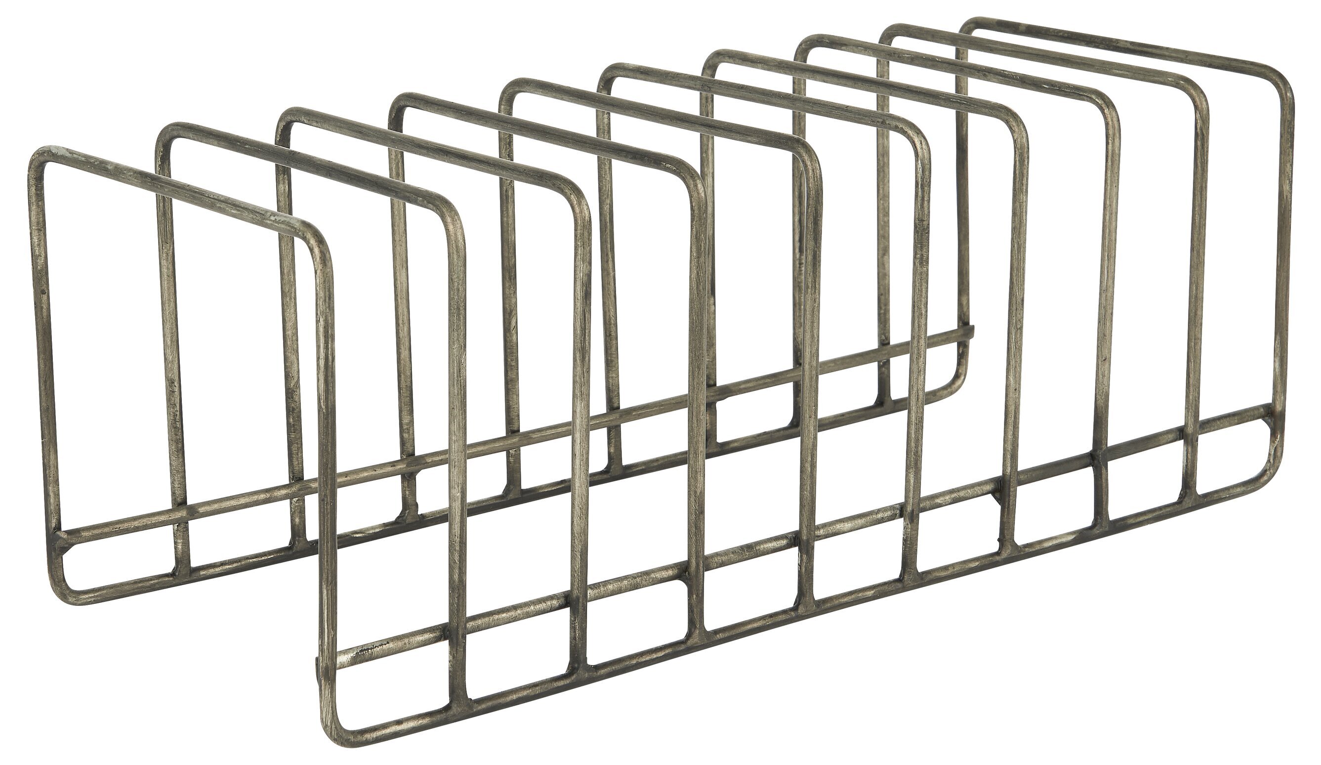 På bilden syns en tallrikshållare från varumärket IB Laursen, som erbjuds av den mångsidiga butiken Köpstaden.se. Denna praktiska köksaccessoar är tillverkad av metall och har en robust konstruktion som säkerställer stabil förvaring av tallrikar. Produktens design består av flera parallella metallstänger som är vertikalt placerade, vilket skapar individuella fack där tallrikar kan placeras upprätt. Stängernas yta har en något rå och rustik finish, vilket ger hållaren en tidlös och enkel estetik.
