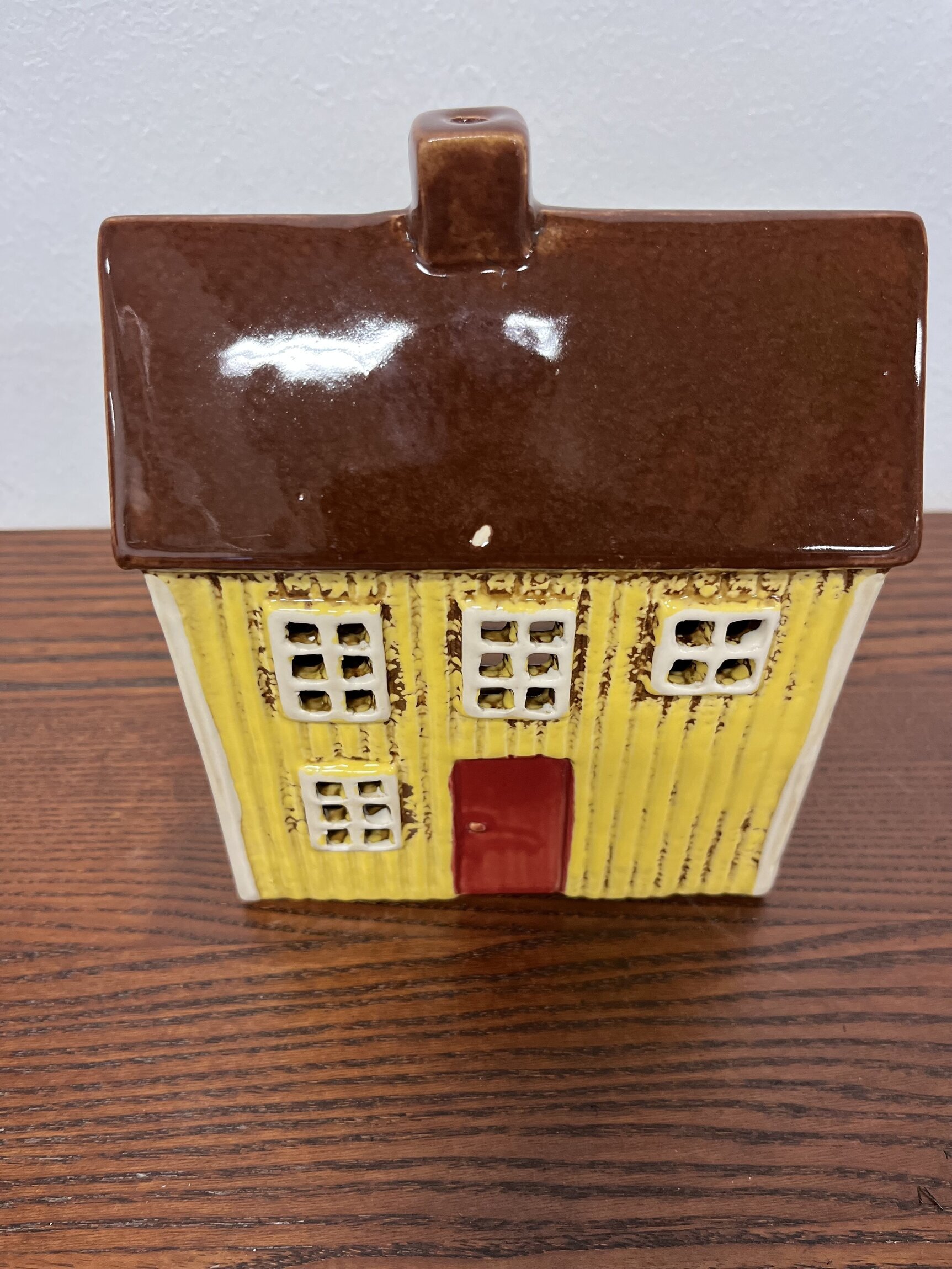 Taket har en mindre nagg/skada i glasyren på framsidan.