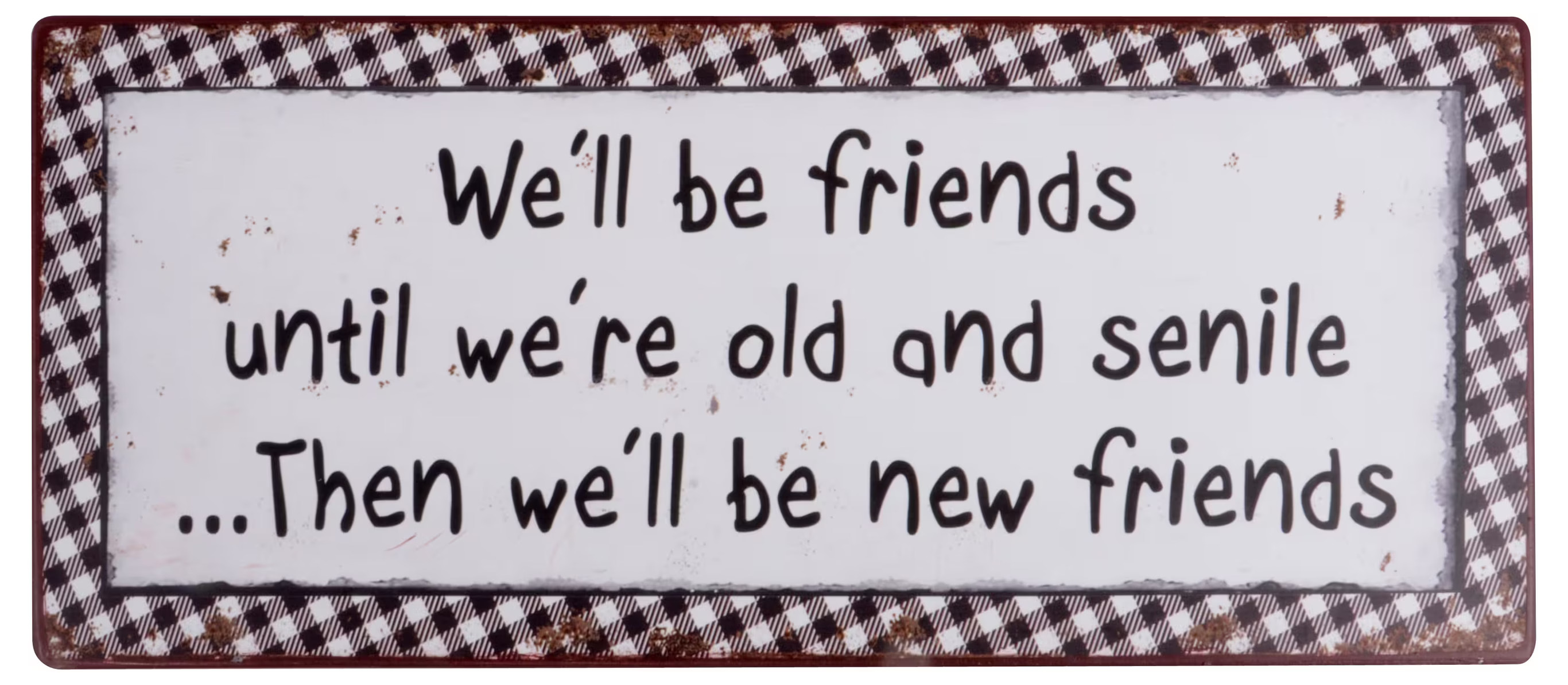Svart & vitmönstrad plåtskylt med lite sliten finish med en härlig text om vänskap. Mått: 30,5 x 13 cm. Läs mer