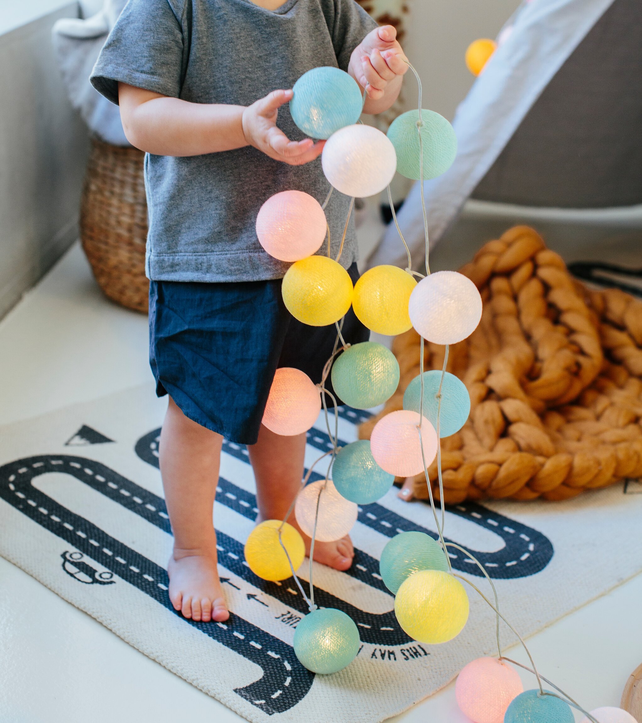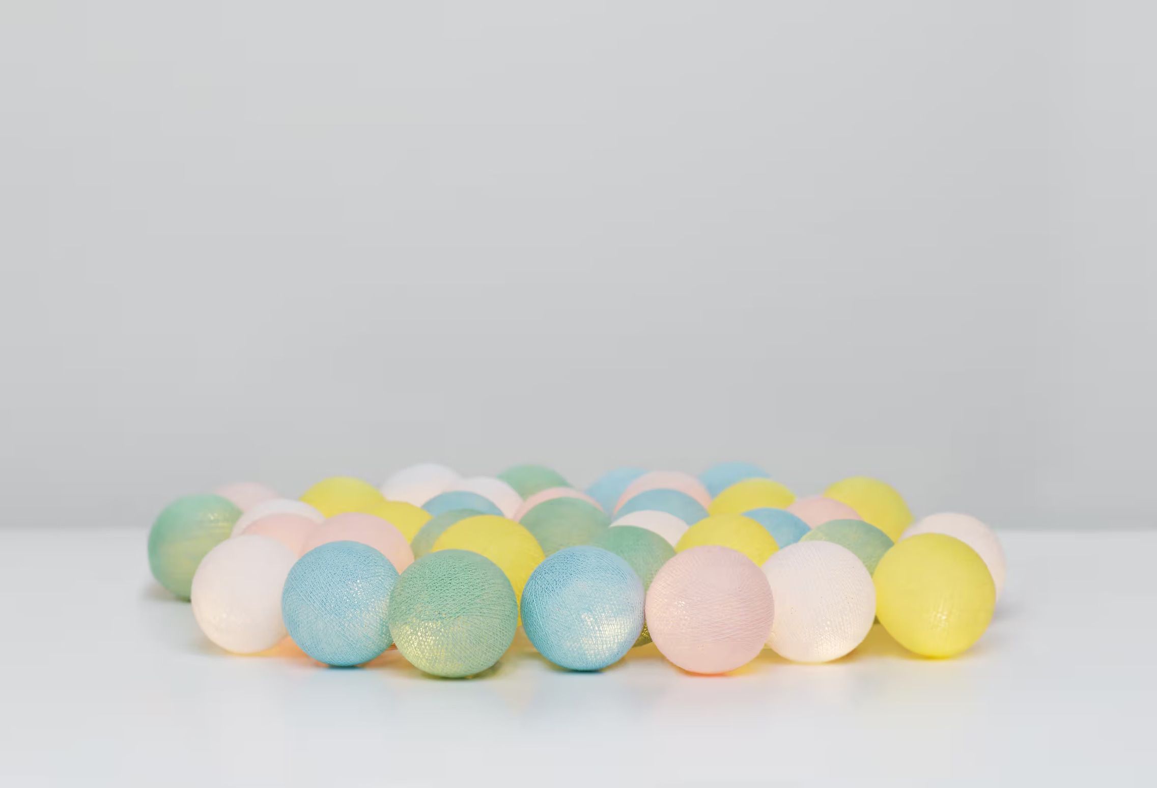 LED-belysning med 20 stycken bollar i färgerna Snow White, Light Pink, Sky Blue, Light Yellow & Mint. Läs mer
