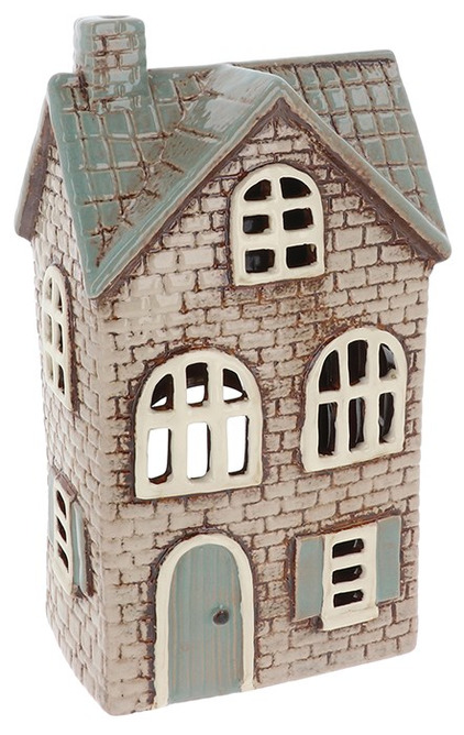 Det här charmiga lilla stenhuset med grönt tak och rundade fönster sprider en lantlig känsla och en varm atmosfär. Den handgjorda känslan och de mjuka färgerna gör den till en vacker inredningsdetalj som passar året om. Kan med fördel även användas tillsammans med LED-ljus eller ljusslinga.