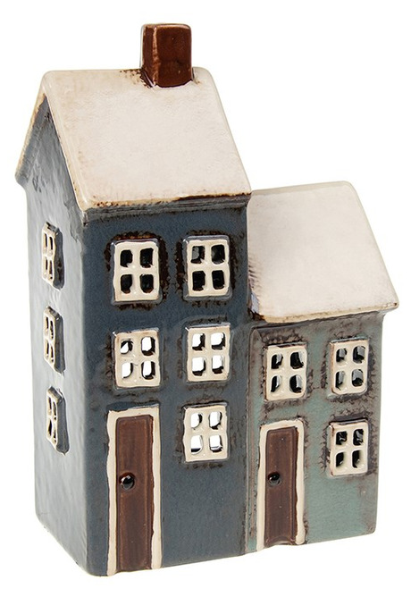 Låt detta lilla keramikhus sprida värme och stämning i ditt hem. Med plats för ett värmeljus eller en liten ljusslinga lyser det vackert genom de små fönstren och skapar en mysig atmosfär. En perfekt detalj för fönsterbrädan, bokhyllan eller som del av en vacker by.